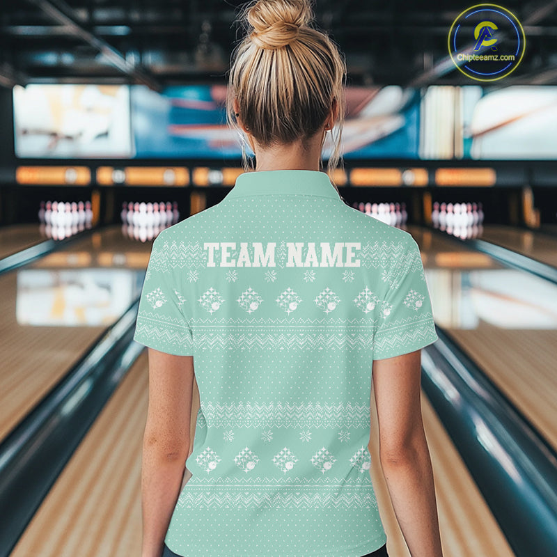 Custom Funny Santa Christmas Women Bowling Quarter-Zip Shirts, Green Xmas Team Outfit IPHW10143