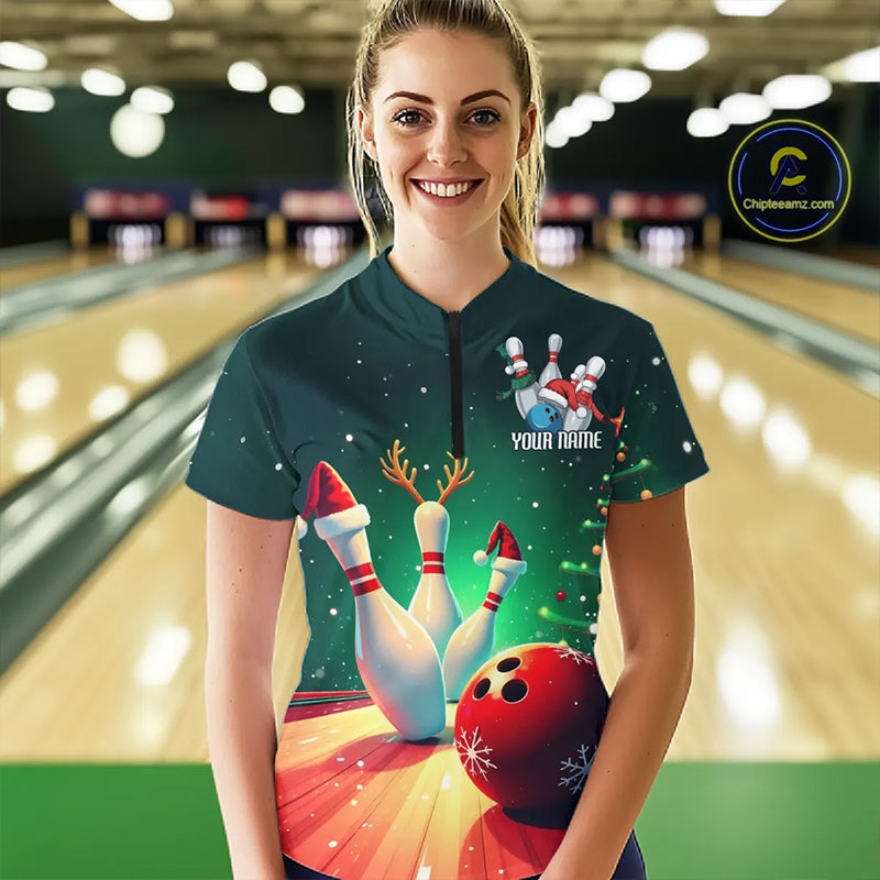 Custom Christmas Ladies Bowling Shirts, Bowling Team Shirt Christmas Bowling Outfits IPHW7841