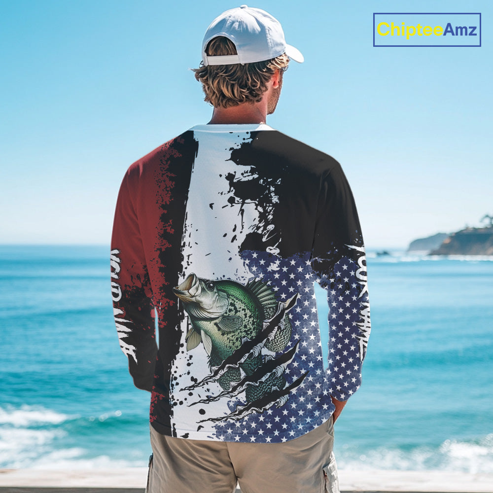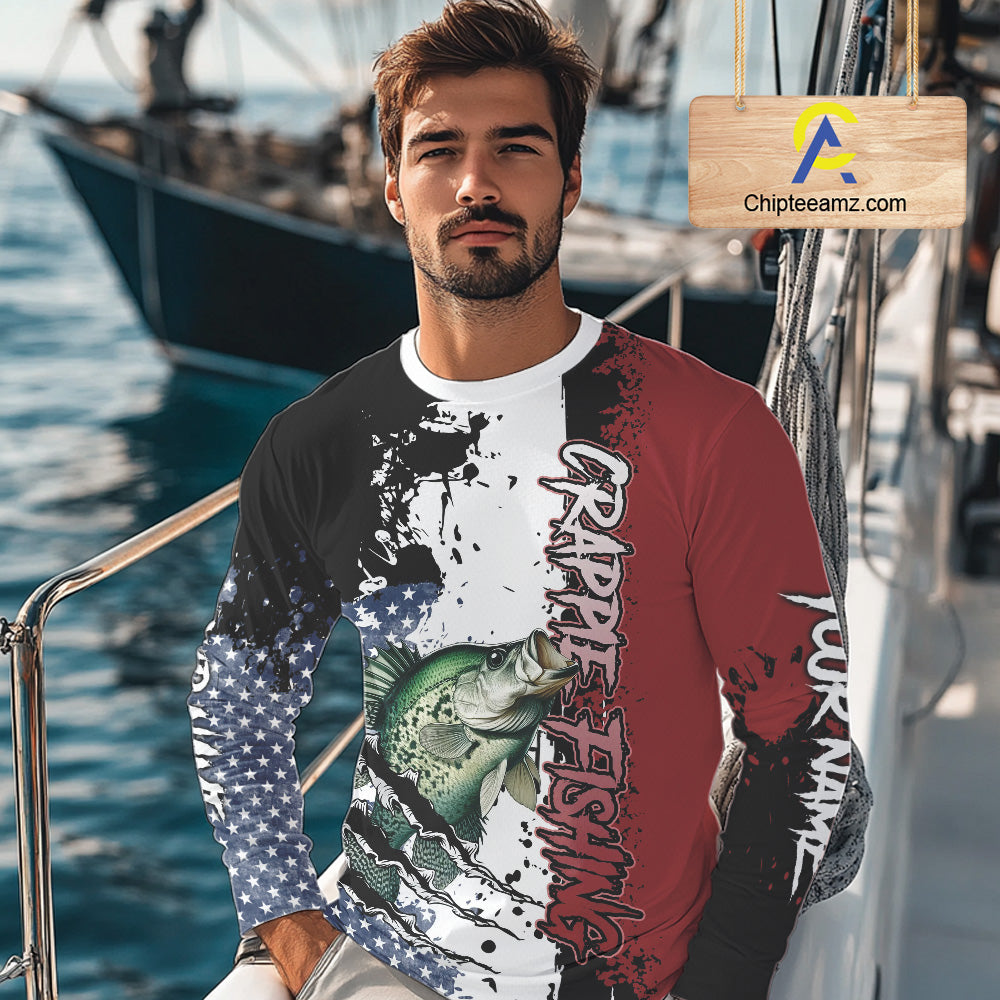 Red, white and blue Crappie fishing American Flag Custom patriotic Crappie fishing jerseys NQS9860