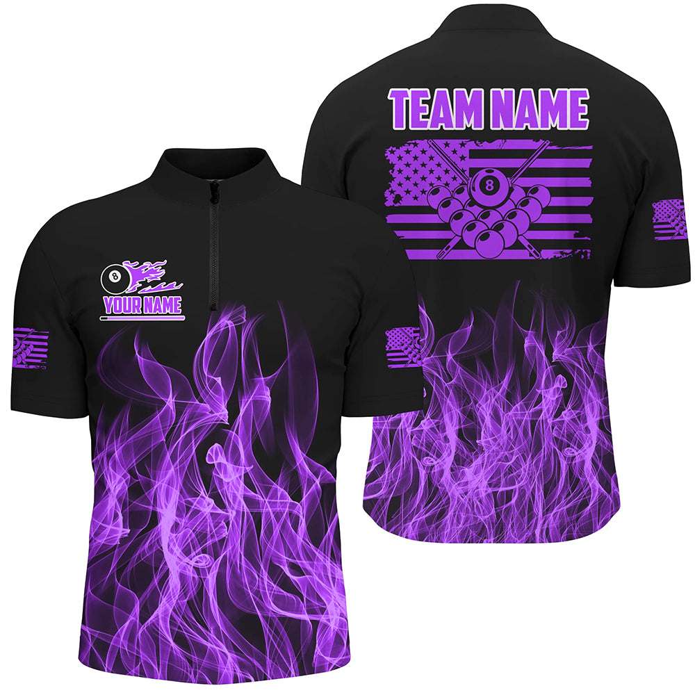 3D Purple Flaming American Flag Men Billiard Shirt Custom Patriotic Pool Player Billiard Jersey TDM3164