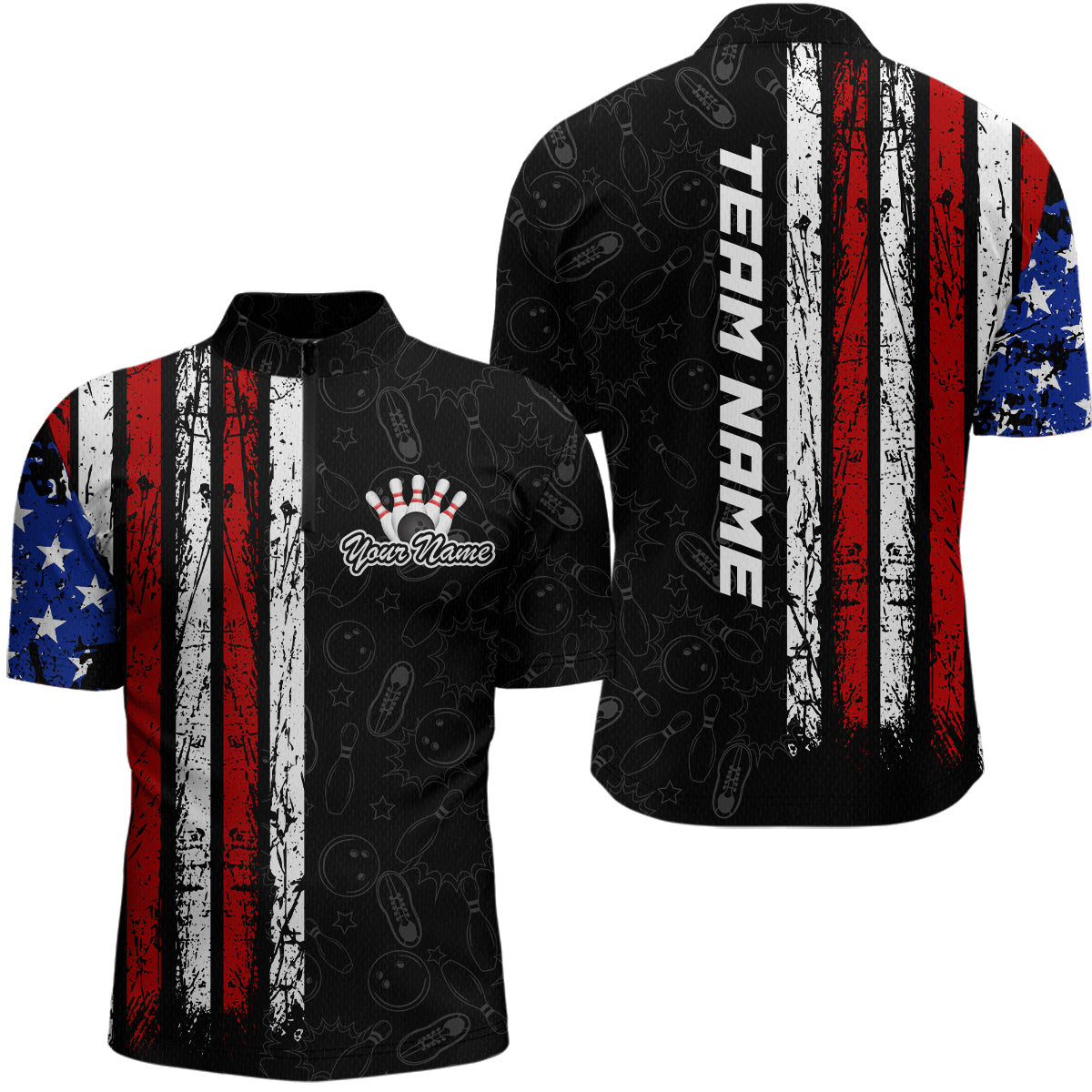 American Flag Bowling Custom Men Bowling Shirt Polo & Quarter-Zip Bowling Team Jerseys HNT52