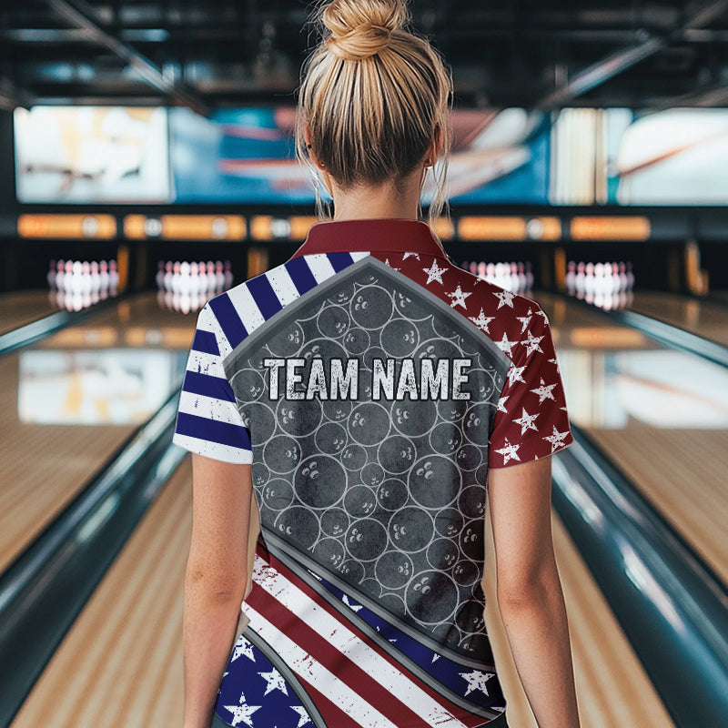 American Flag Gray Camo Bowling Polo, Quarter Zip shirt for Women Custom patriotic Team bowling jersey NQS9404