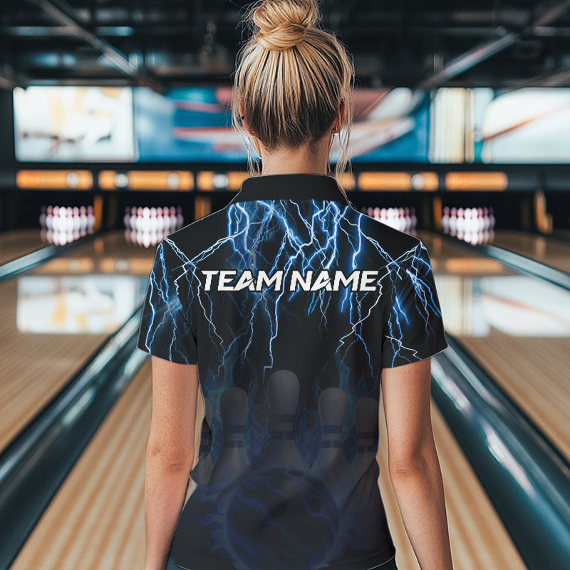 Black and Blue Lightning Thunder Lion Bowling Shirt For Women Custom Lion Bowling Team Jerseys NQS9645