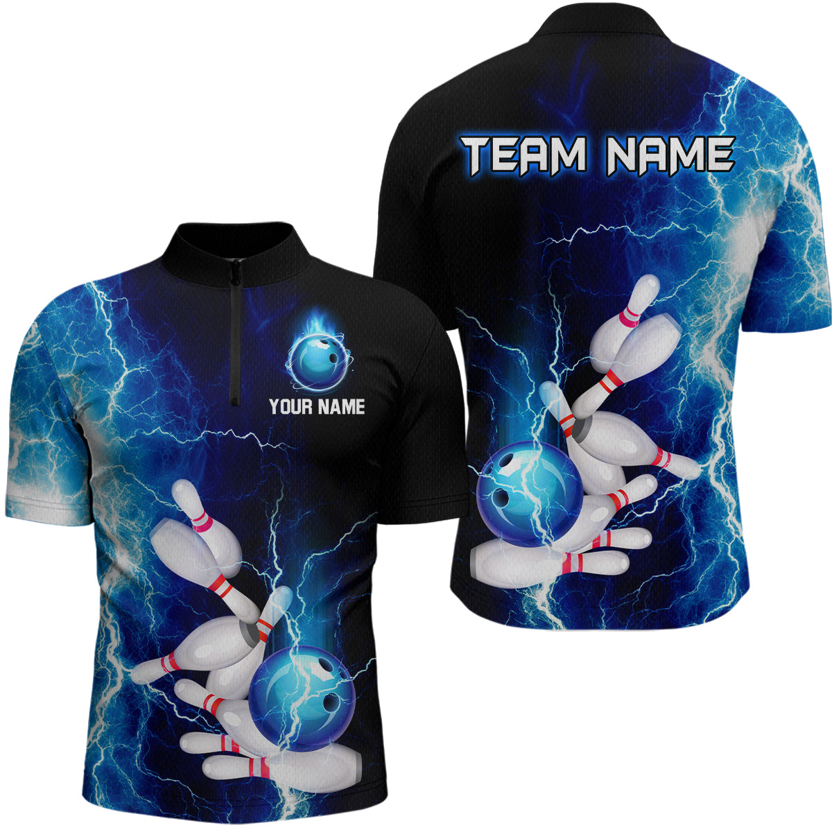 Blue Thunder Bowling Shirt for Men Custom Polo & Quarter-Zip Team Bowling Jersey Bowling Team Shirt HNT22