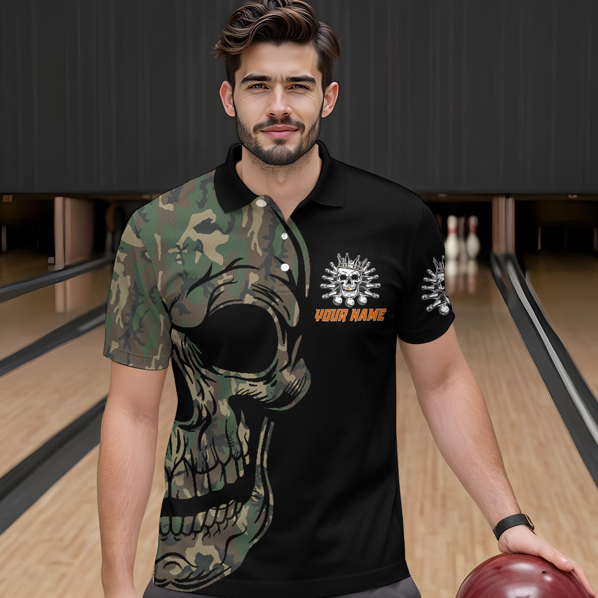 Camo Bowling Shirt Custom Skull Bowling Jersey Men Bowling Polo Shirt For Team BDT284