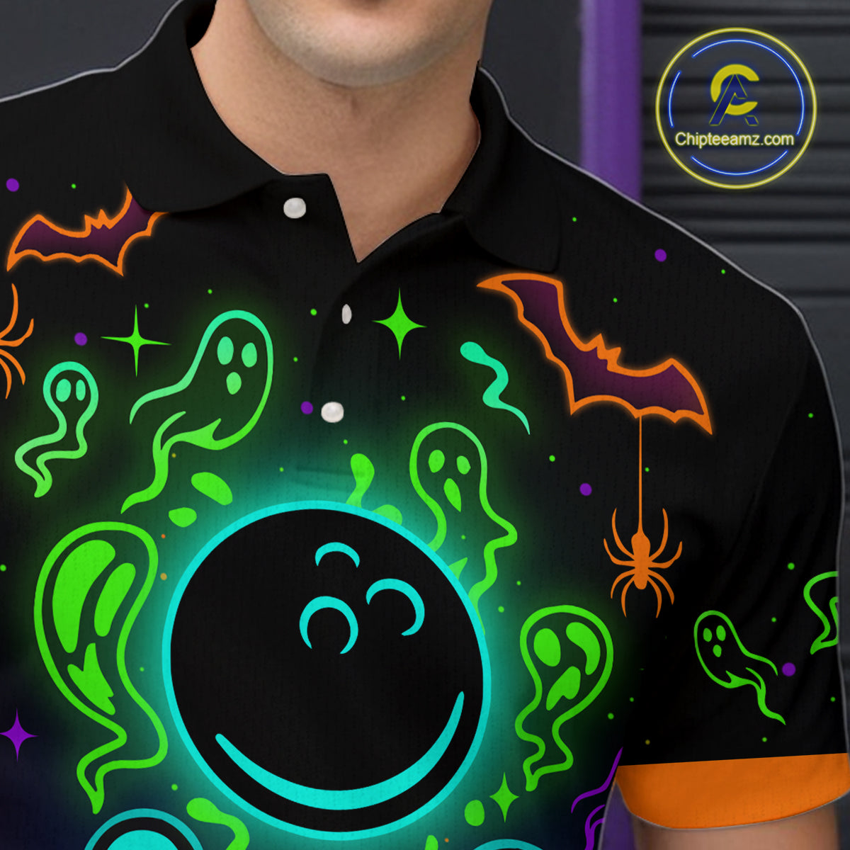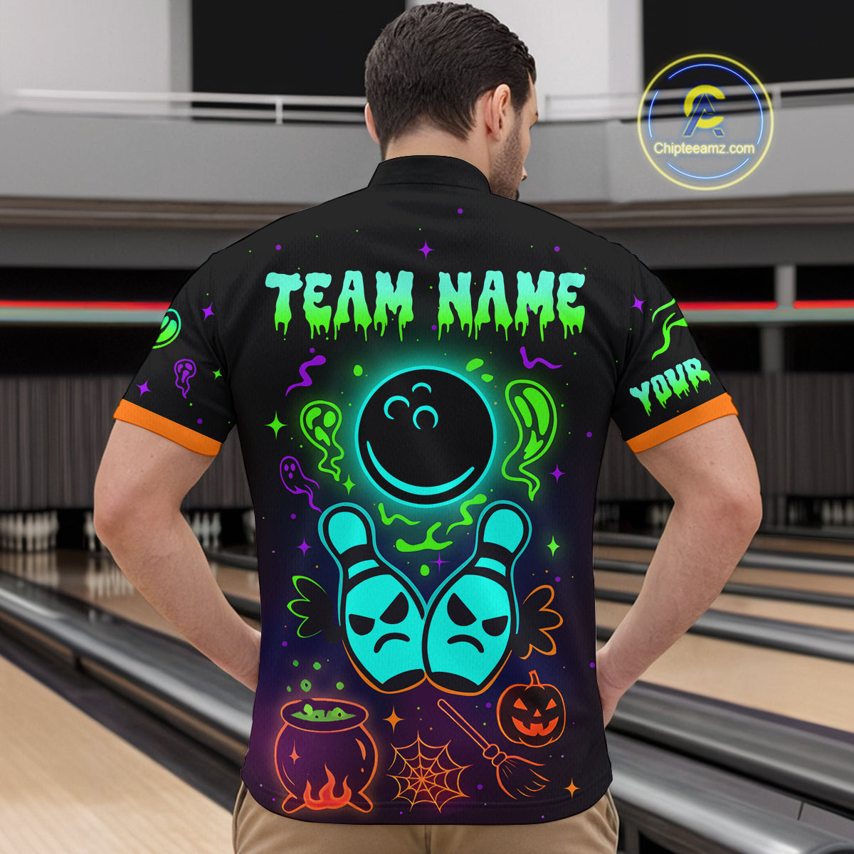 Custom Neon Bowling Team Shirt Halloween Polo & Quarter-Zip Bowling Jersey for Men QZT731