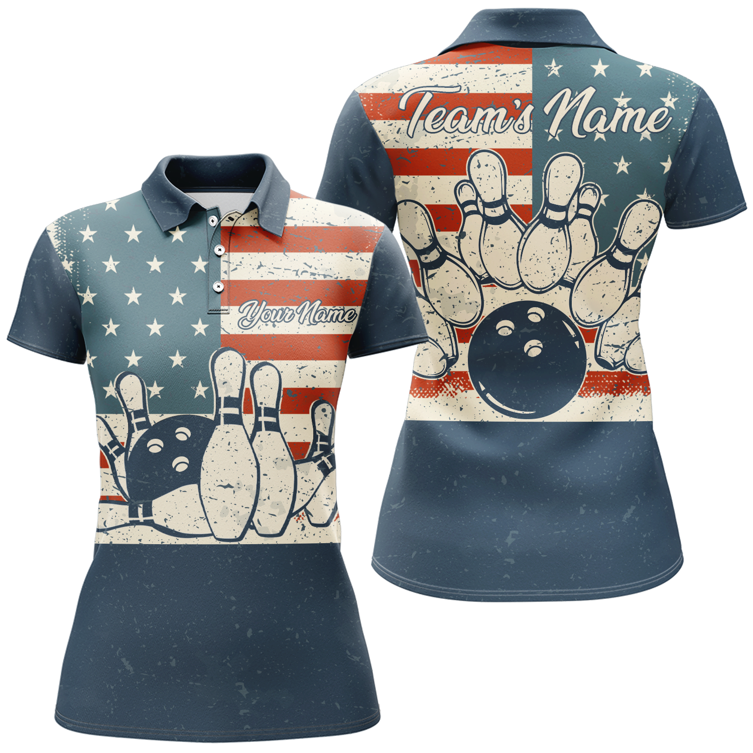 Navy Bowling Shirt Women American Bowling Jersey Team League Custom Bowling Polo Shirt BDT279