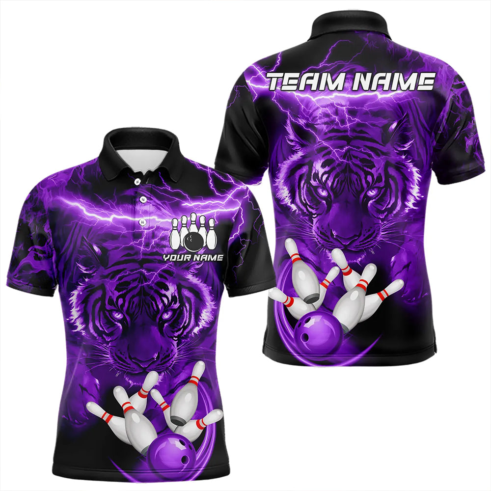 Personalized Purple Lightning Thunder Storm Tiger Bowling Shirts For Men Custom Bowling Team Jerseys NQS9684