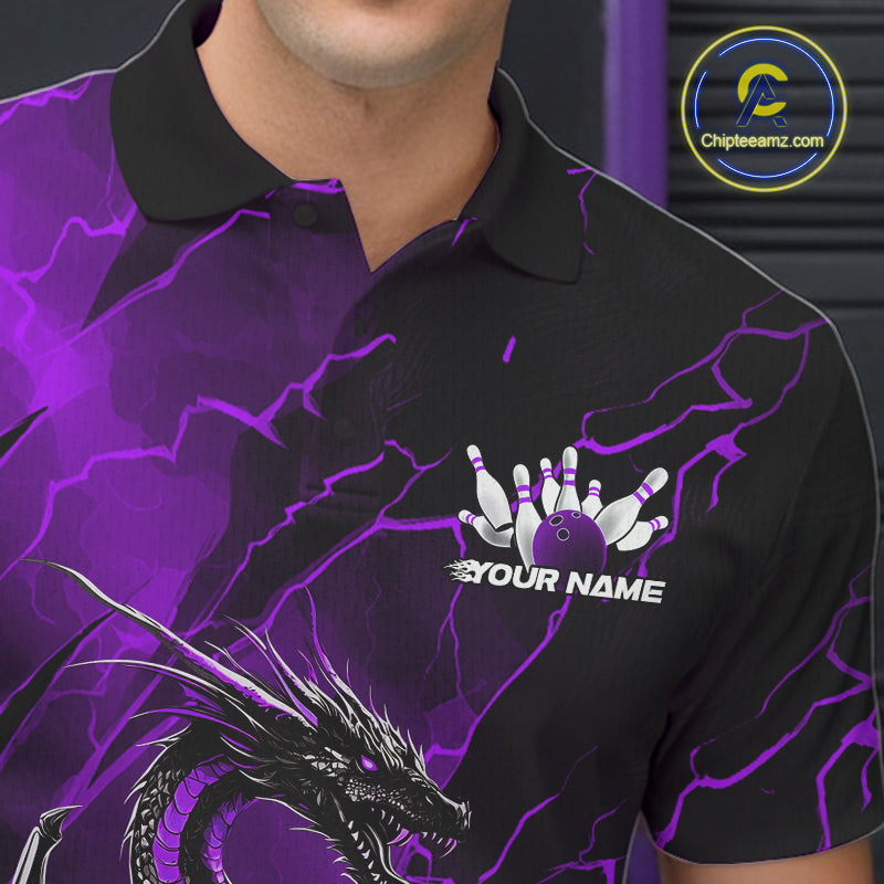 Custom Purple Lightning Dragon Bowling Polo Shirt For Men, Dragon Bowling Team Jersey IPHW9902