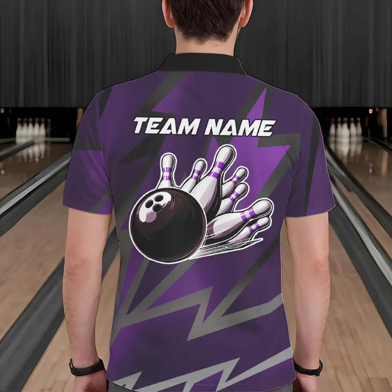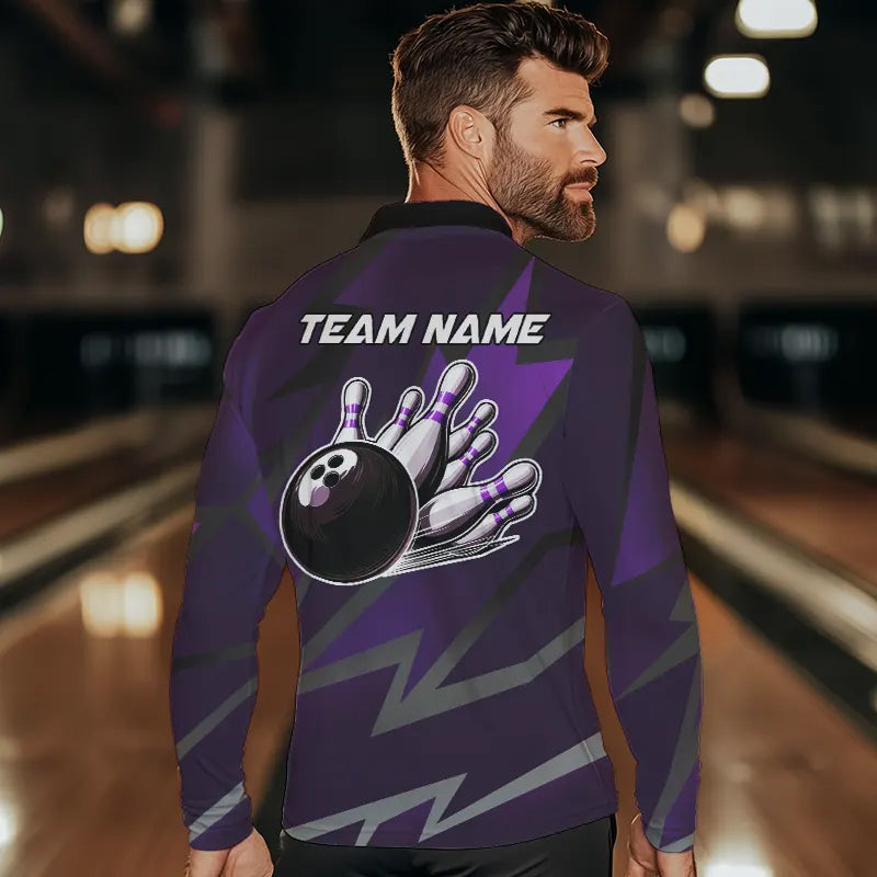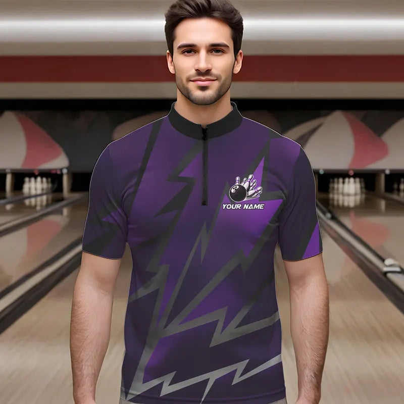 Purple Lightning Thunder Storm Team bowling shirts for Men custom bowling Polo, Quarter zip jerseys NQS9625