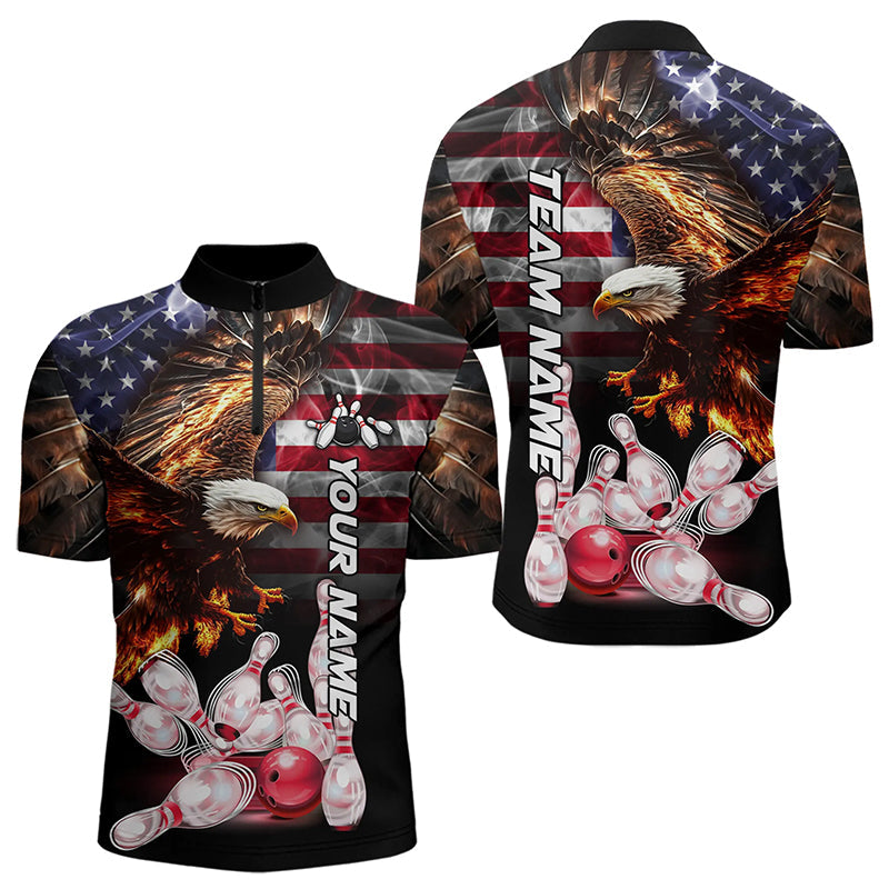 Smoke American Flag Eagle Flame Bowling Shirts for Men Custom patriotic Team Bowling jerseys NQS9504