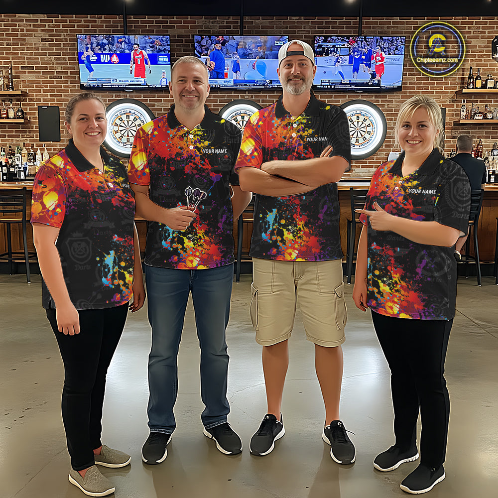 Colorful Paint Men Quarter Zip Dart Shirts With Pocket Custom Darts Jersey TDM1894