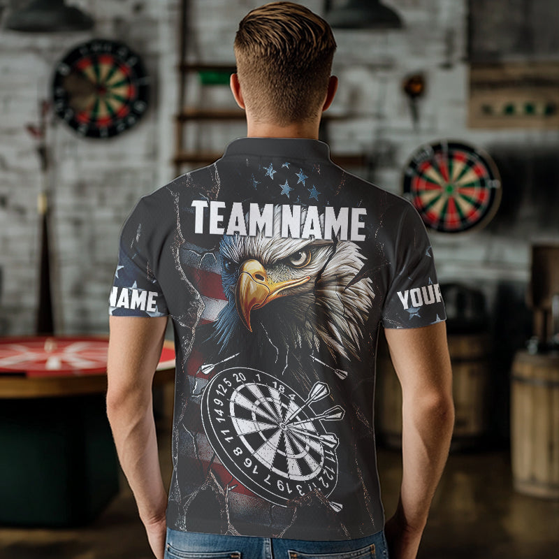 Personalized Eagle American flag Dart Polo, Quarter Zip Shirt for Men Custom Patriotic Darts Jersey NQS9521