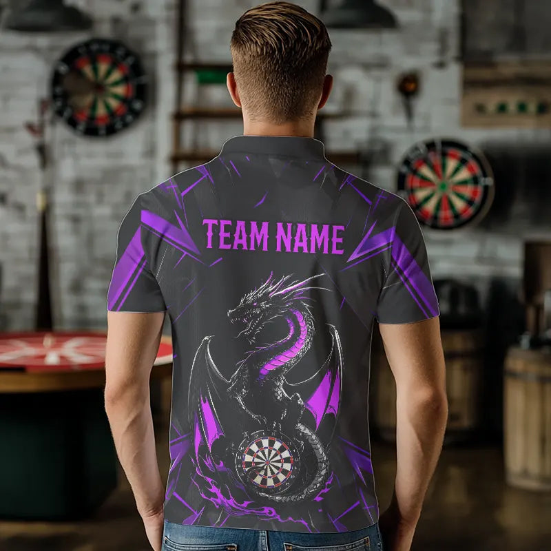 Custom Black And Purple Dragon Dart Polo Shirts For Men, Dart Jerseys Dart Tournament Shirt IPHW8708