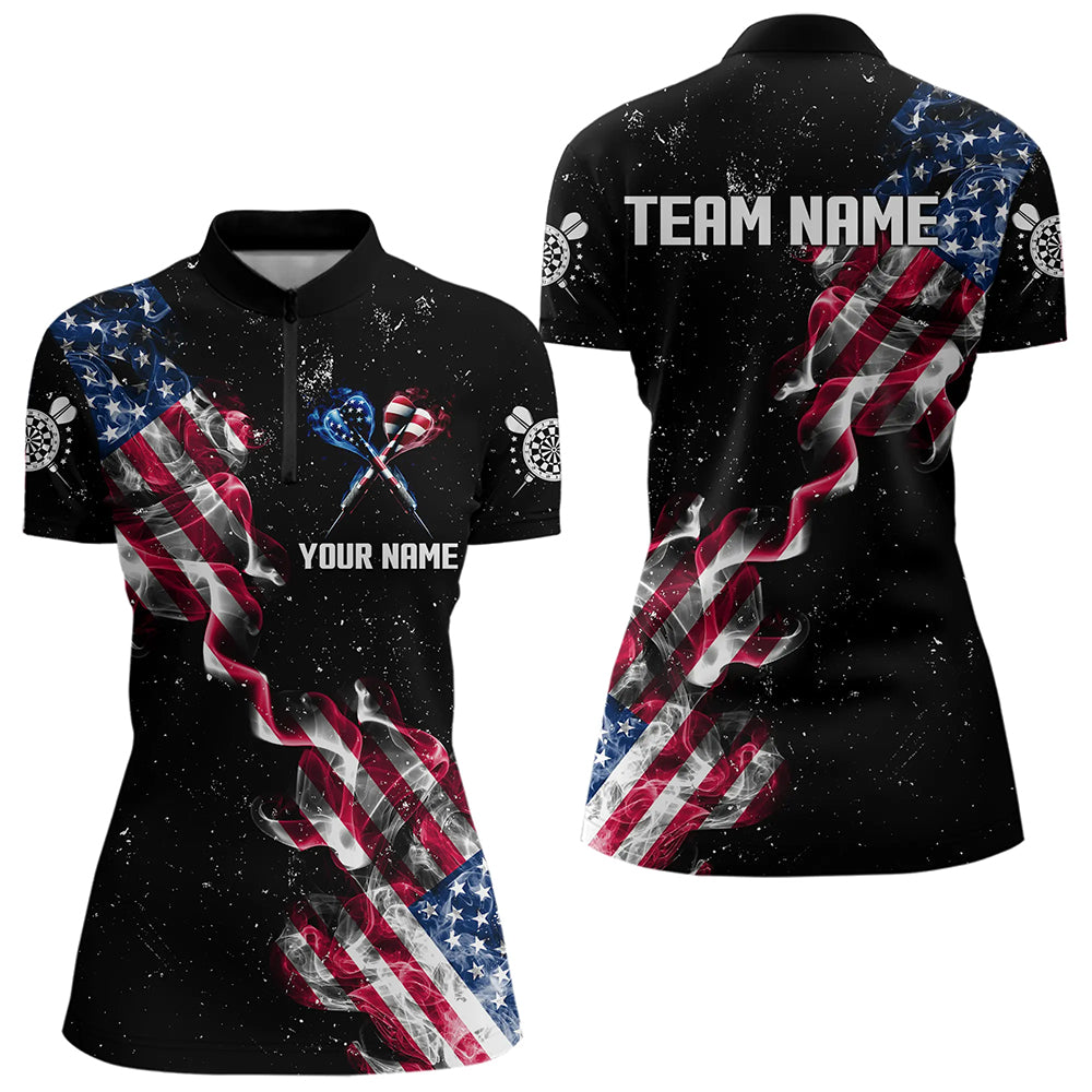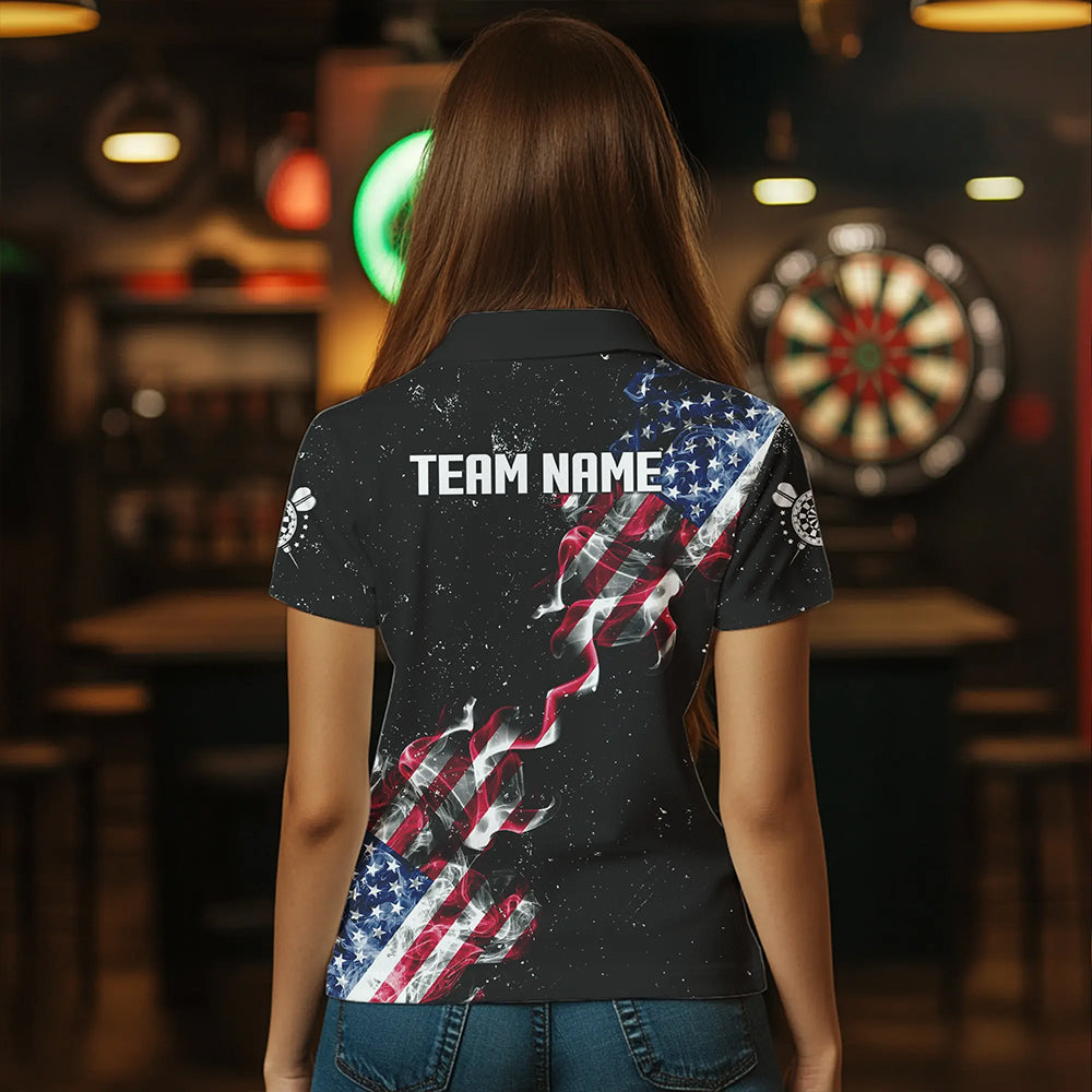 Customized Grunge US Flag Smoke Darts Polo & Quarter-Zip Shirts, Patriotic Darts Jerseys For Women TDM3455