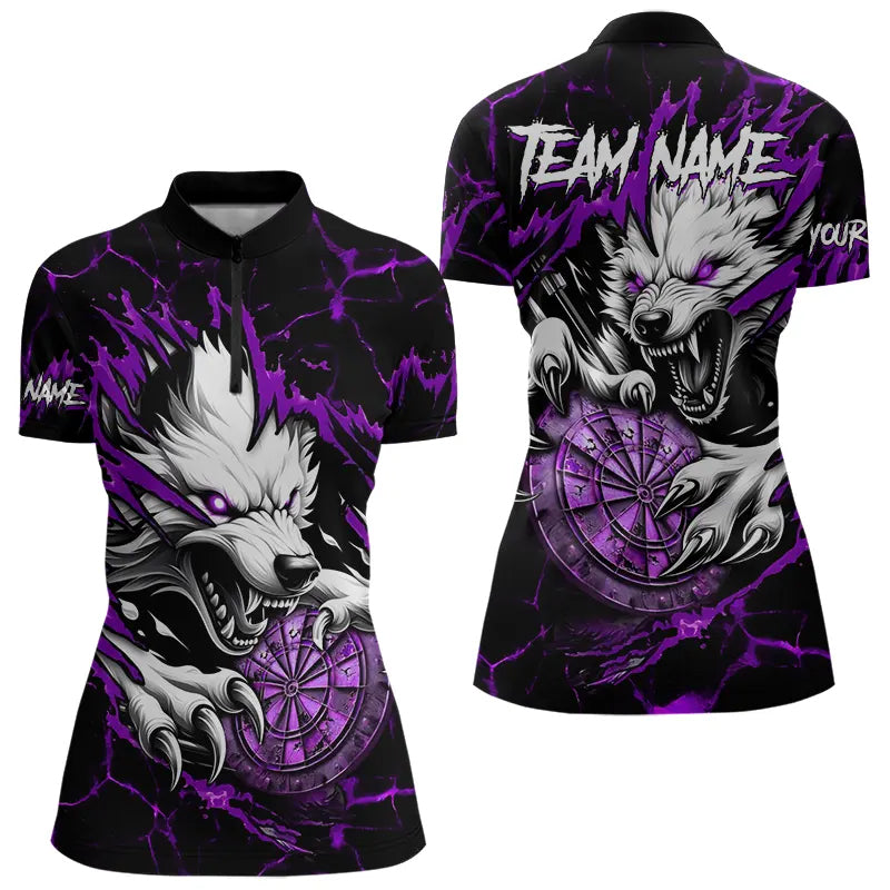 Personalized Wolf Lightning Darts Polo & Quarter Zip Custom Dart Shirts For Women Darts Jersey |Purple TDM3611