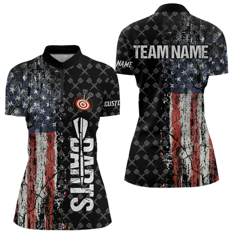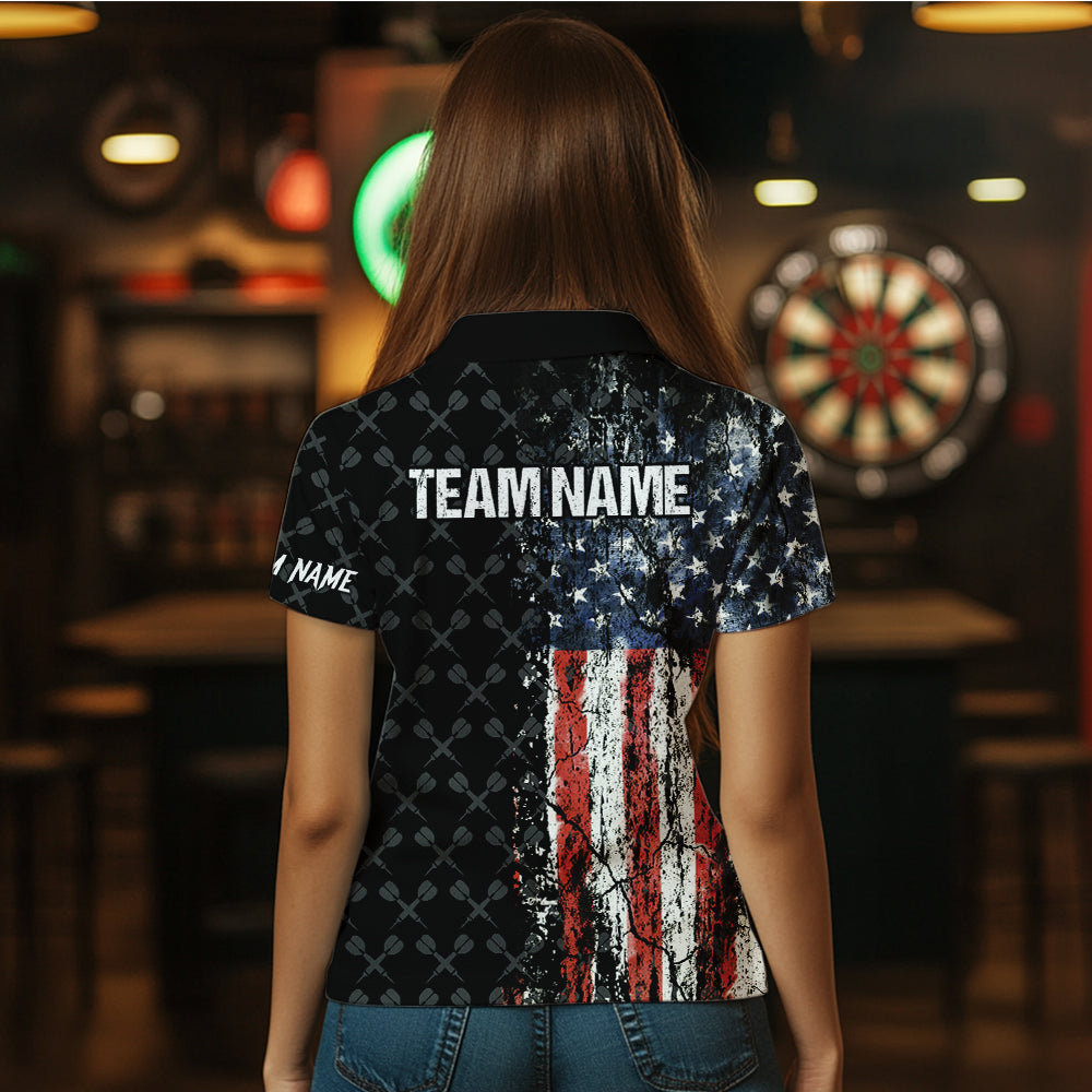 Grunge Vintage American Flag Custom Retro Dart Shirts For Women, Pride Team Patriotic Dart Jerseys TDM3693