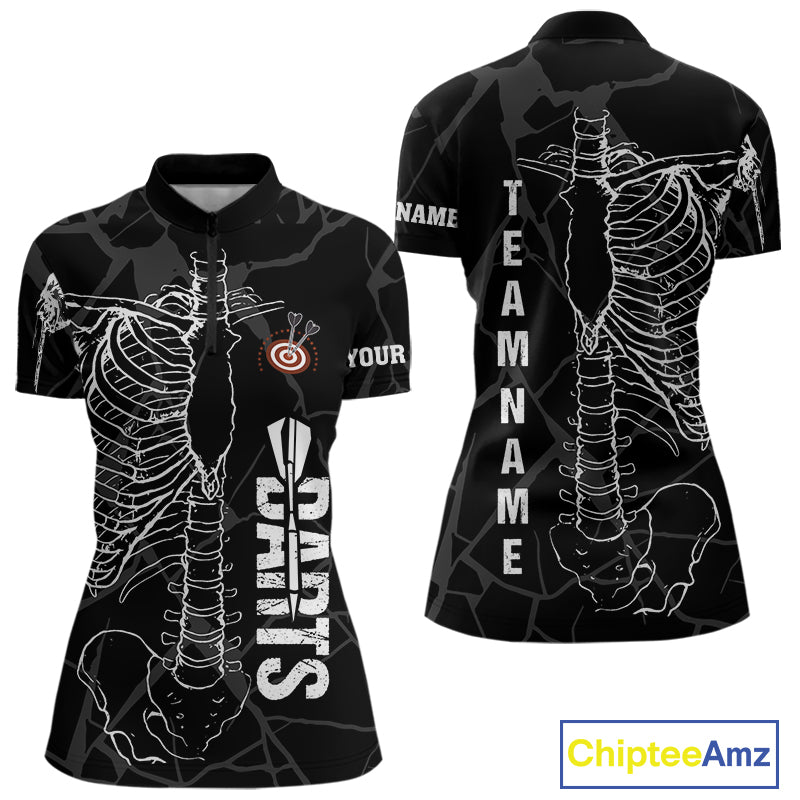 White Skeleton Custom Black Grunge Darts Polo & 1/4 Zip, Funny Dart Shirts For Women Dart Jerseys TDM3746