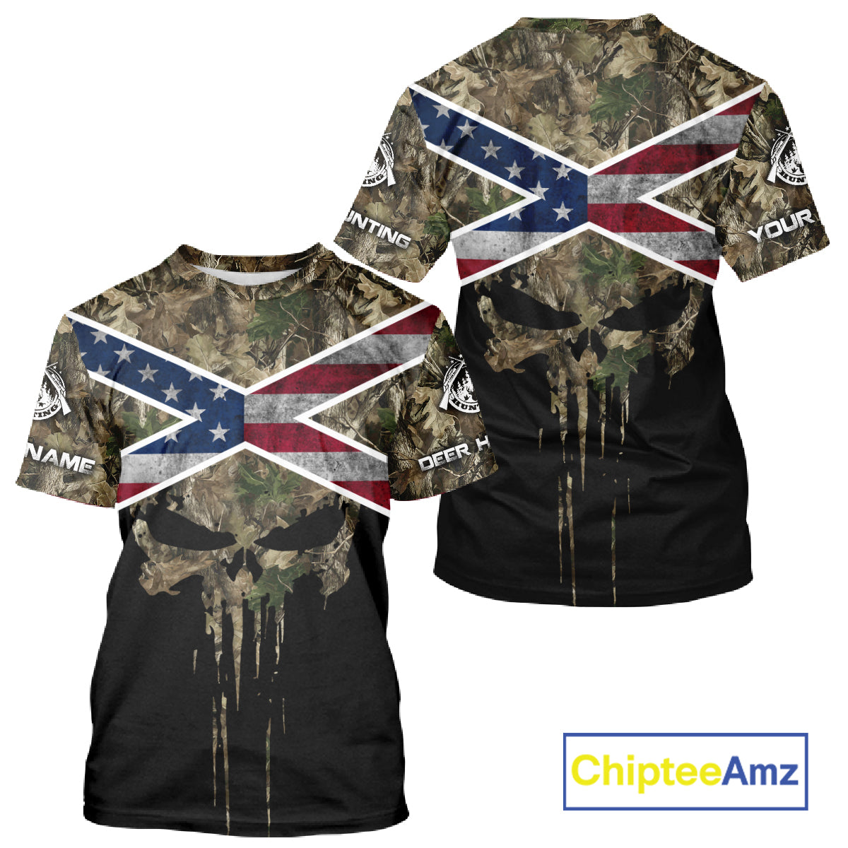 Camo Deer Hunting Shirts with US Flag, Personalized Deer Hunting Shirt, Hunting Gifts for Men NBT95
