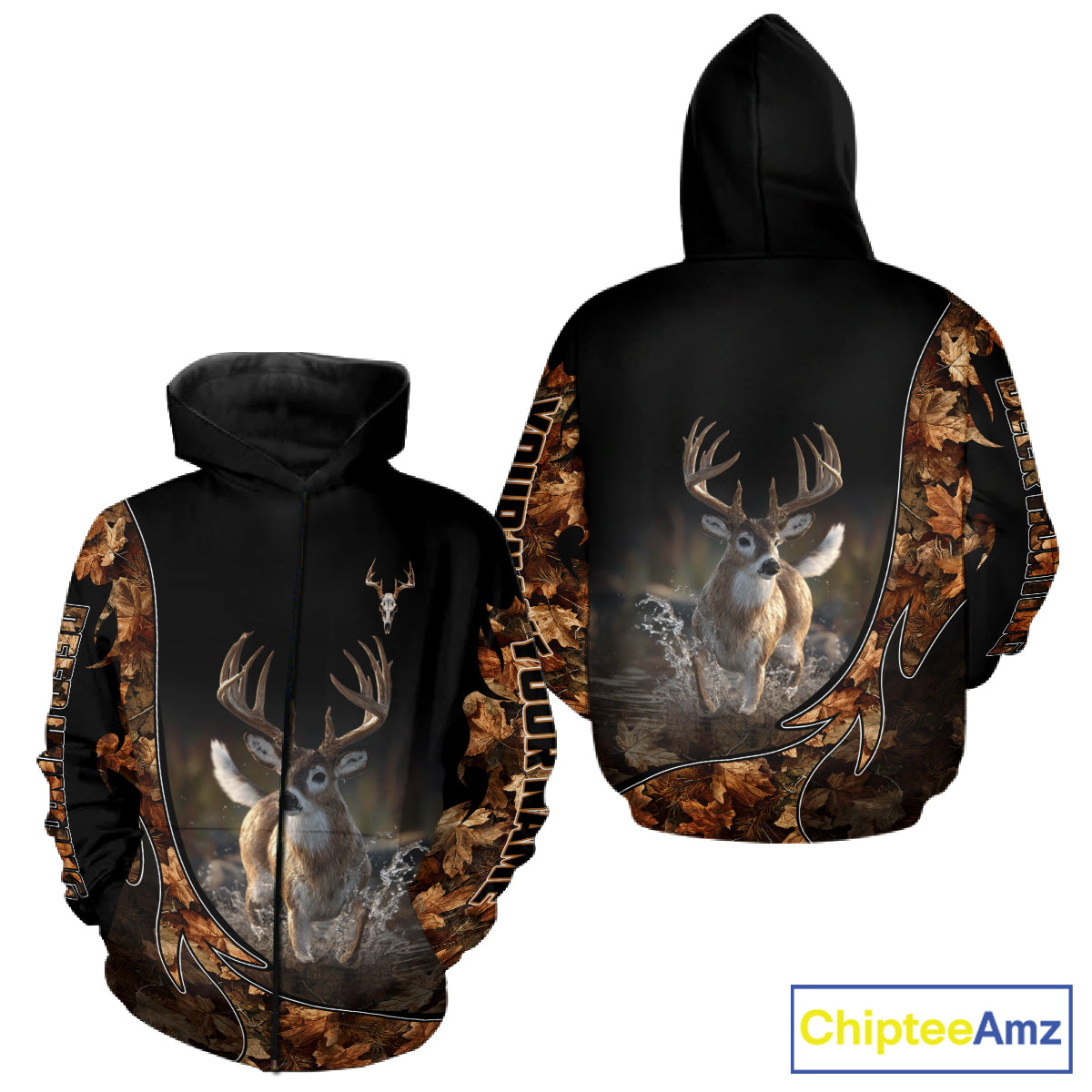 Deer Hunting Big Game Shirt 3D All Over Print, Black Camo Autumn, Custom Name Gift NHT164
