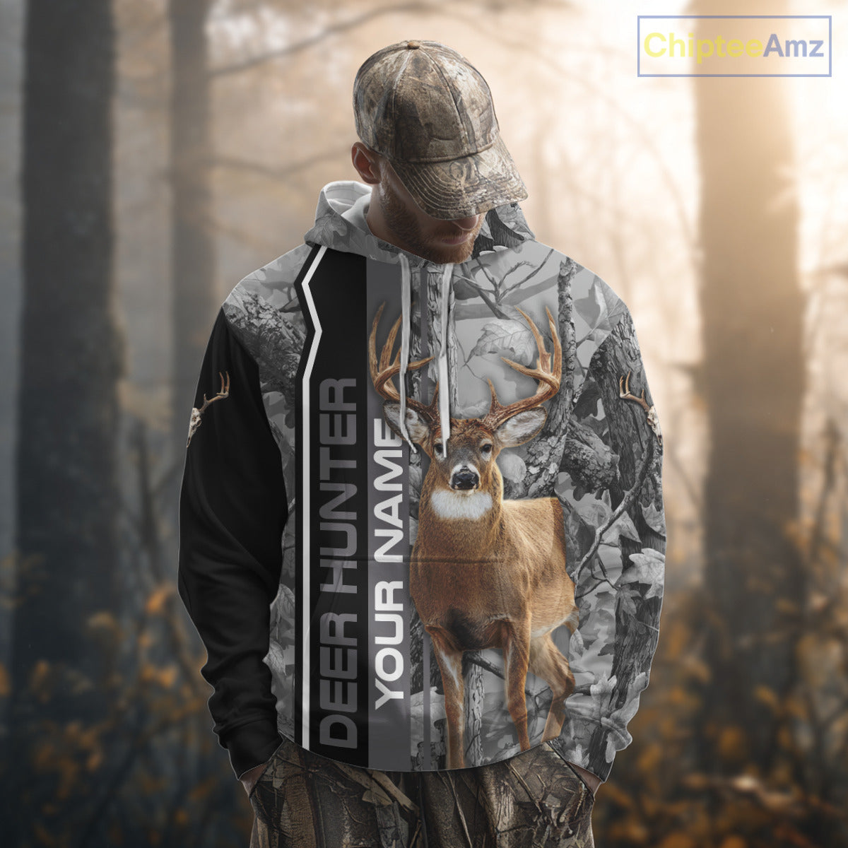 Deer Hunting Camo Custom Name 3D All Over Print Shirt Gray Black, Best Deer Hunting Shirt NHT210