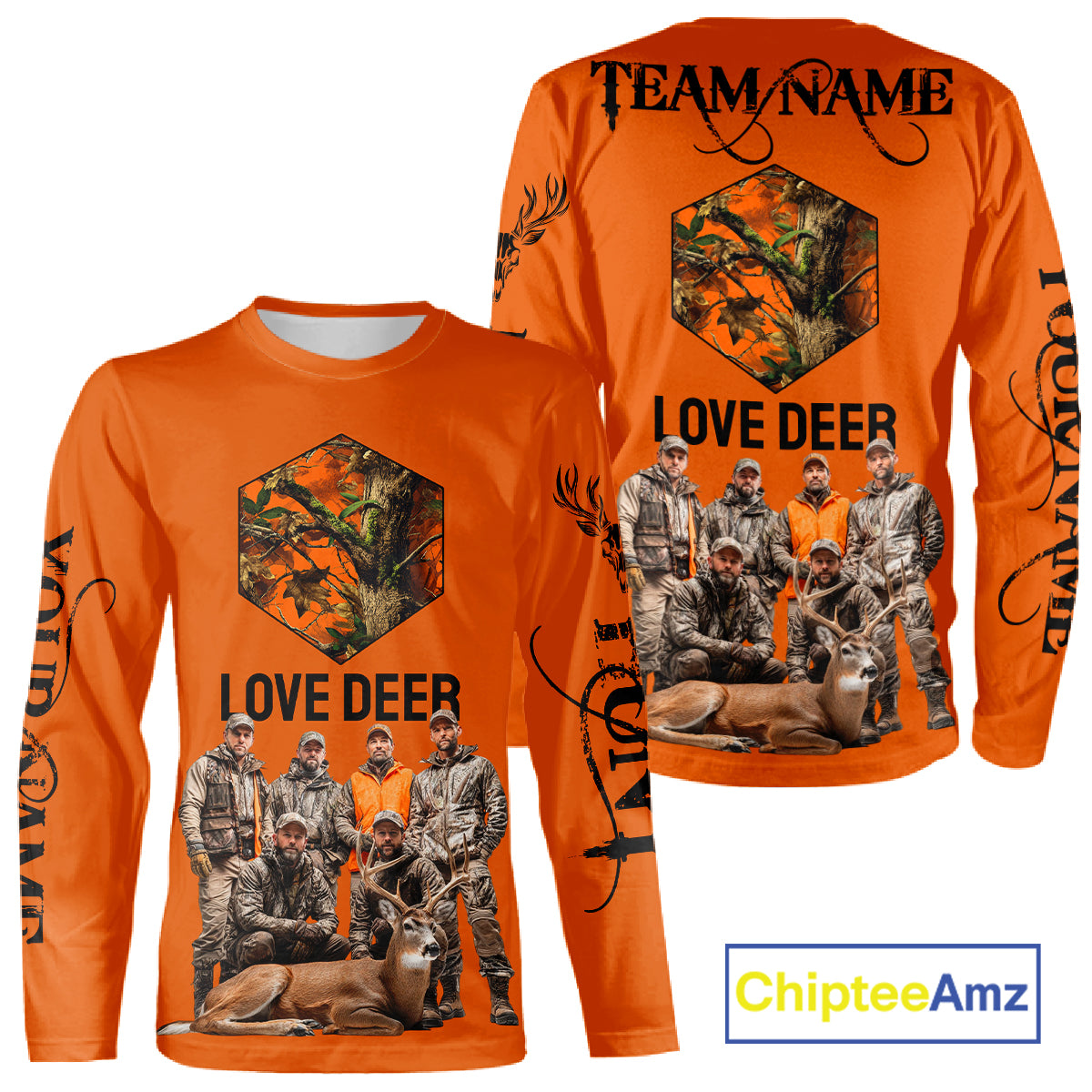 Deer Hunting Orange Hoodie, Long Sleeve Shirt Custom Name, Team Name Gift For Hunter NHT05