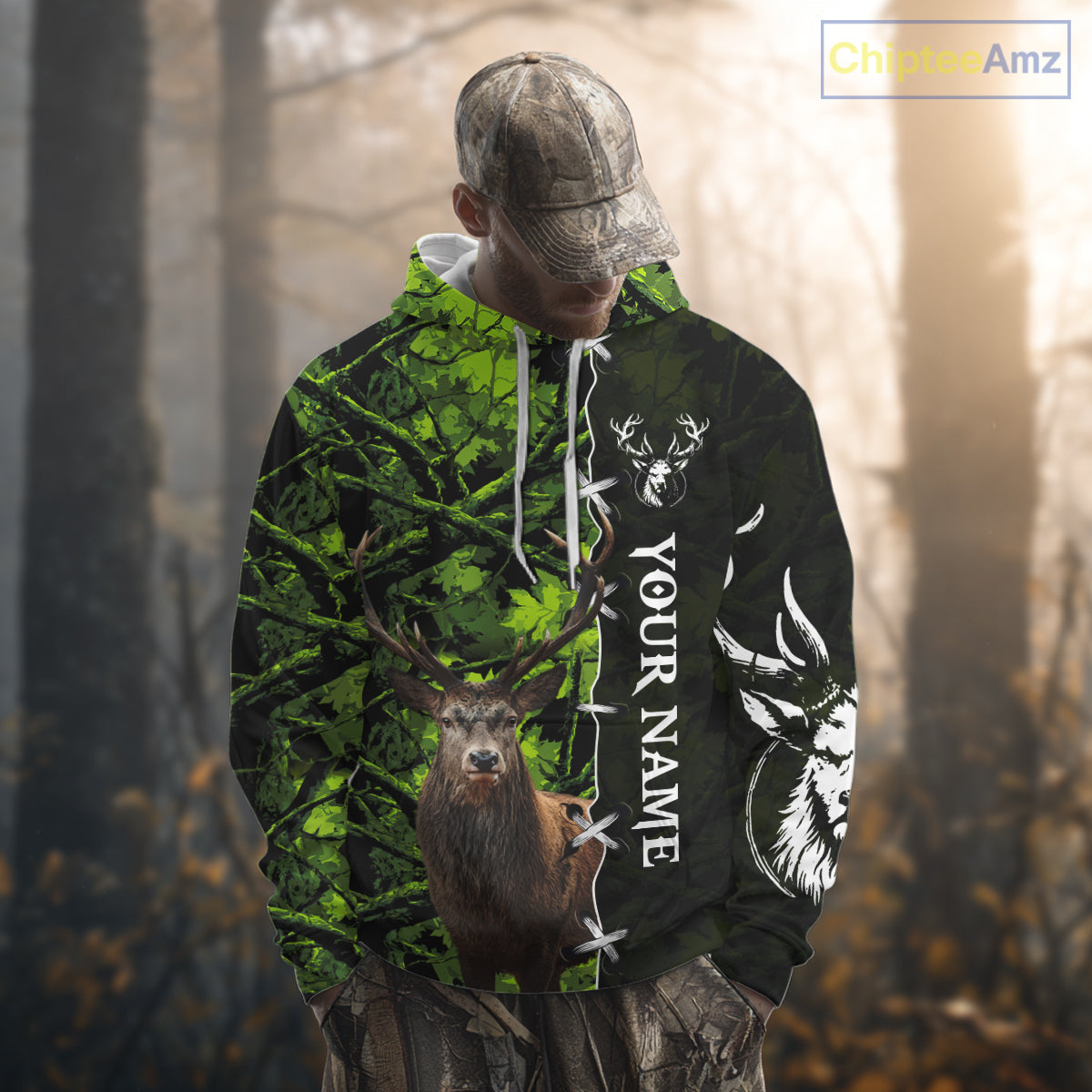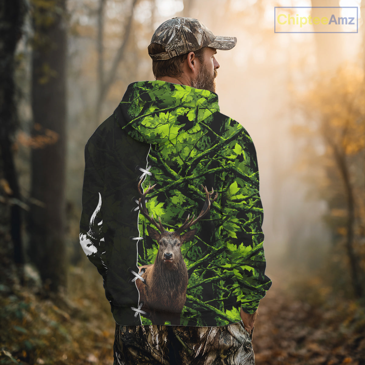 Green Camo Deer Hunting Hoodie, Longsleeve Shirt for Deer Season, Hunting Gifts for Men NBT10
