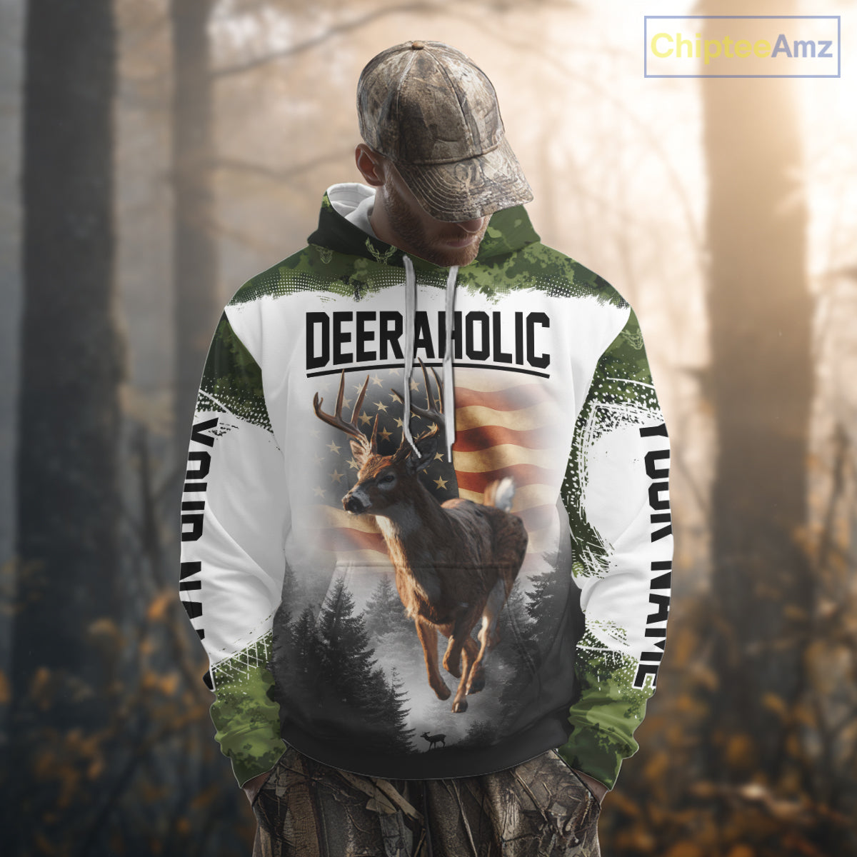 Green Camouflage Deer Hunting Shirts with American Flag – Custom Name, Gift for Hunters NBT37