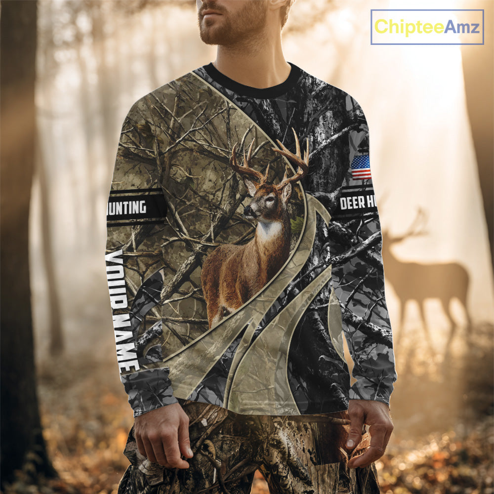 Designed for deer hunters and outdoor enthusiasts, this shirt blends style, comfort, breathable and funtionality in one. The unique hunting-inspired design can be personalized with your name, along with details like the American flag, camouflage patterns, and more - making it the perfect gift ideas for hunters during deer hunting season.ย