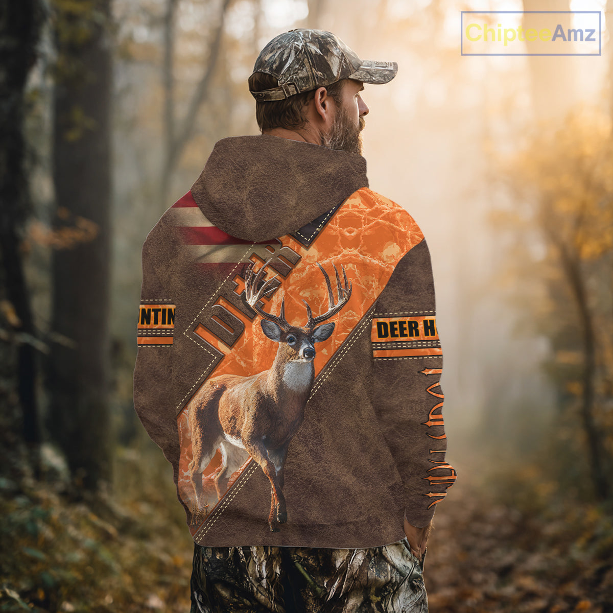 Whitetail Deer Hunting Leather Pattern Custom Name Shirt 3D All Over Printed Clothes, Hunting Gifts NBT90
