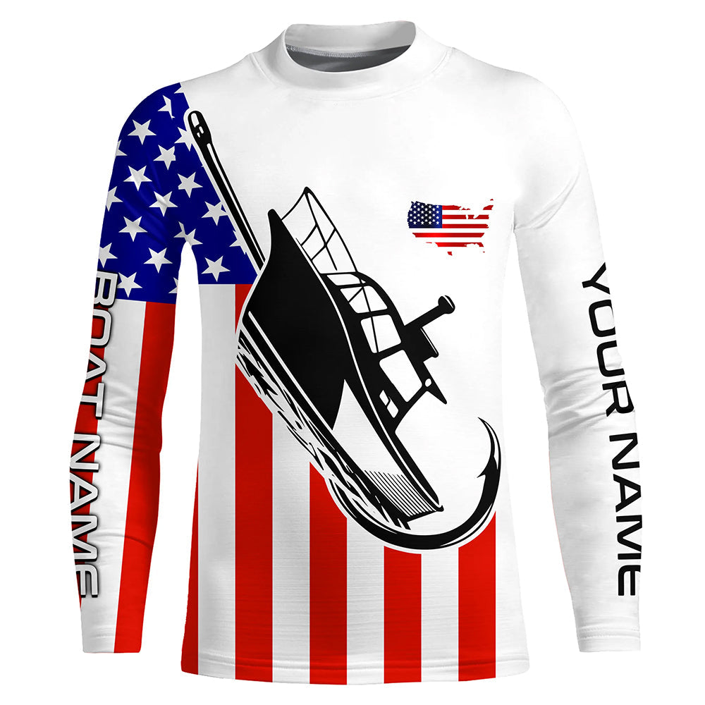 Custom Deep Sea Fishing Shirts With Boat Name, American Flag Saltwater Fishing Shirts IPHW4761