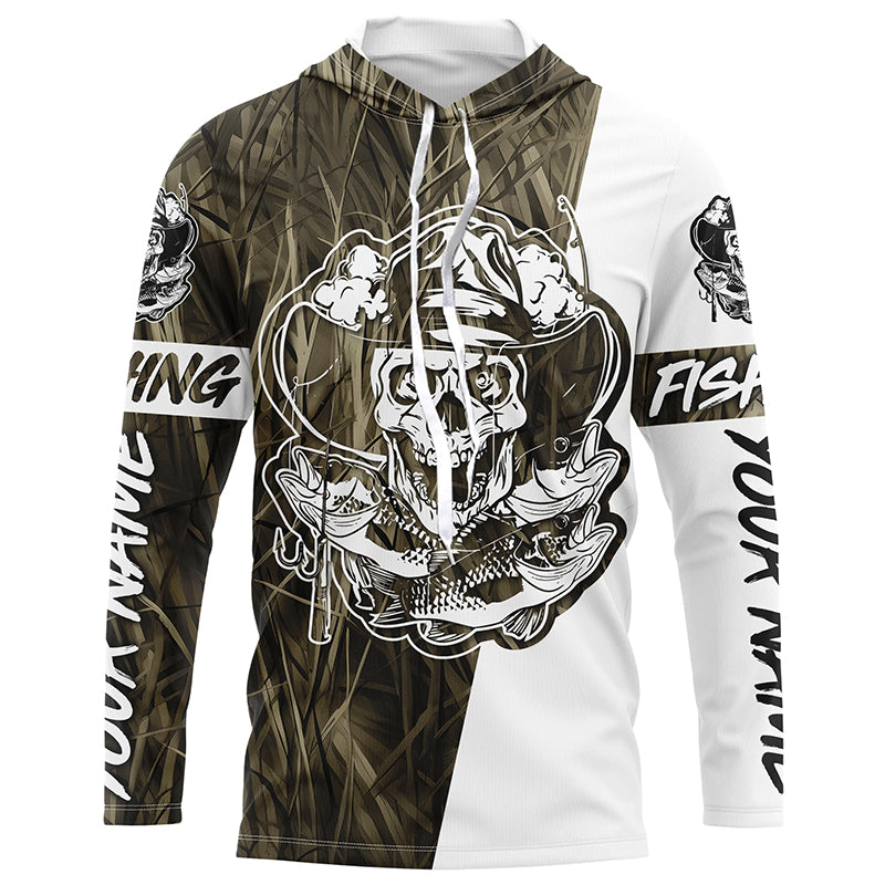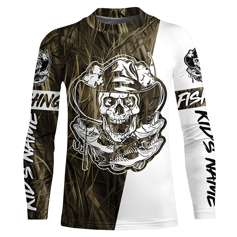 Grass Camo Skull Fisherman Custom Long Sleeve Fishing Shirts, Skeleton Fishing Jerseys IPHW6350