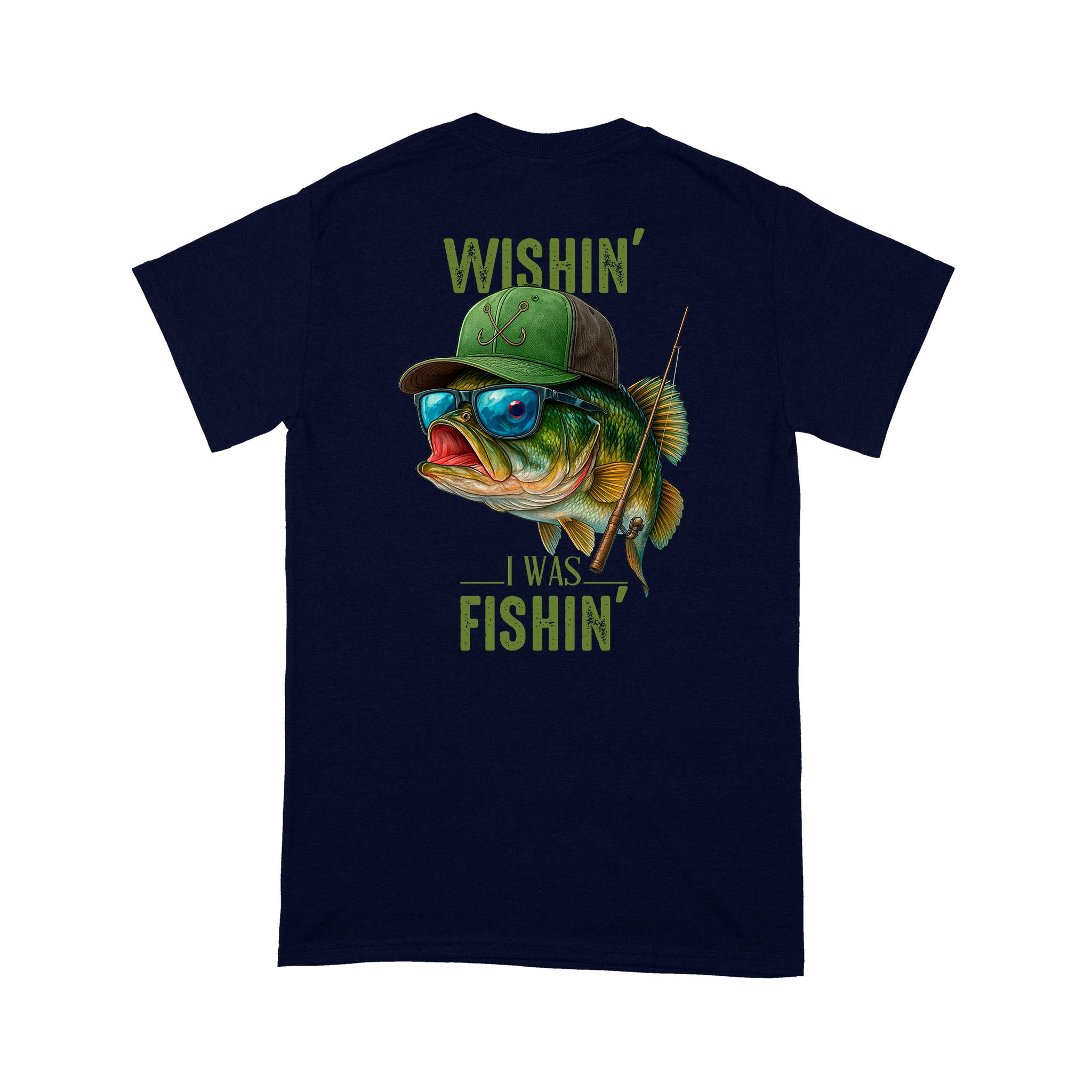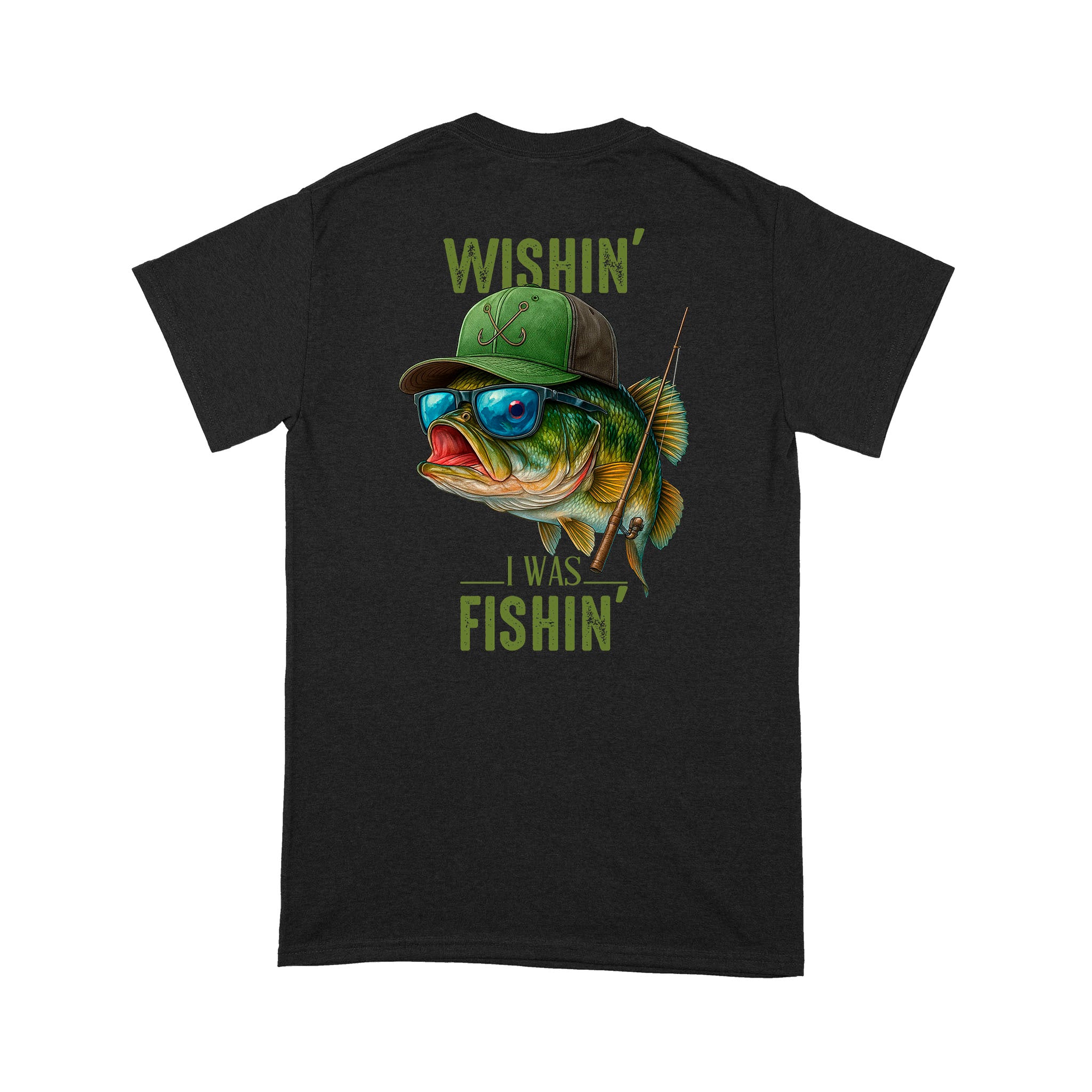 Funny Fishing Shirt Wishin' I Was Fishin Custom Name funny Bass fishing T-Shirt D03 NQS9898