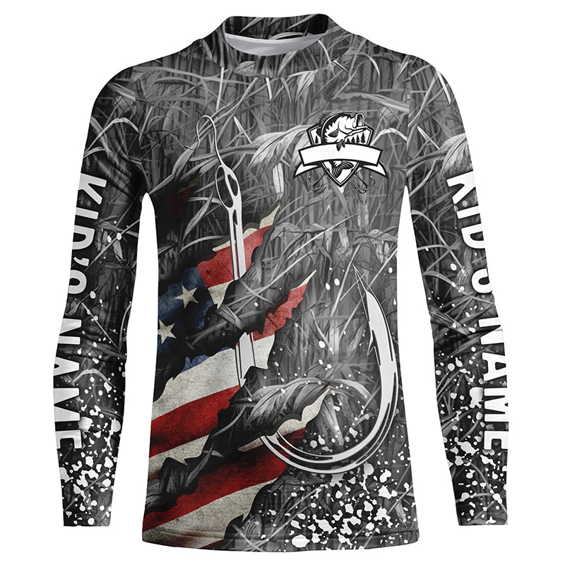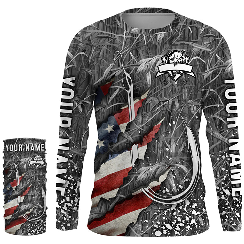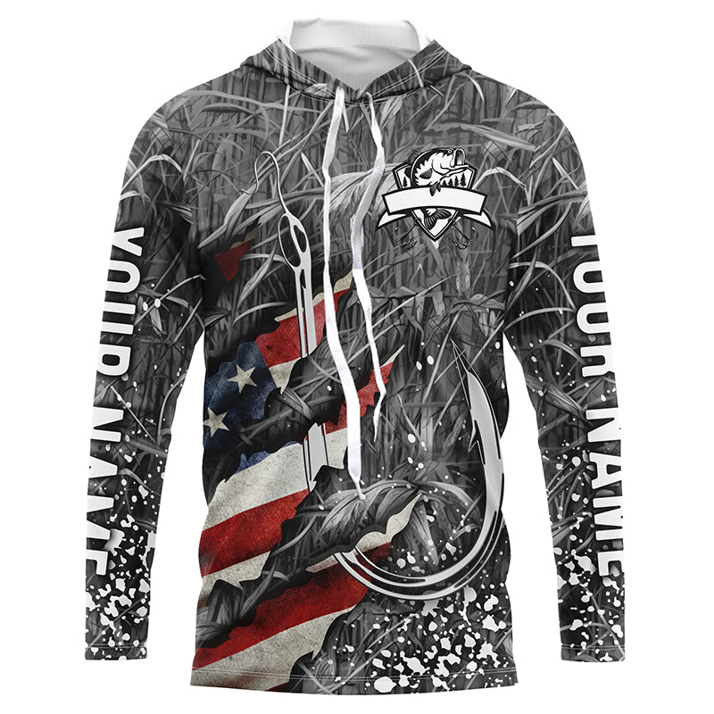 American flag fish hook gray camo fishing custom sun protection performance long sleeve fishing shirt NQS6055