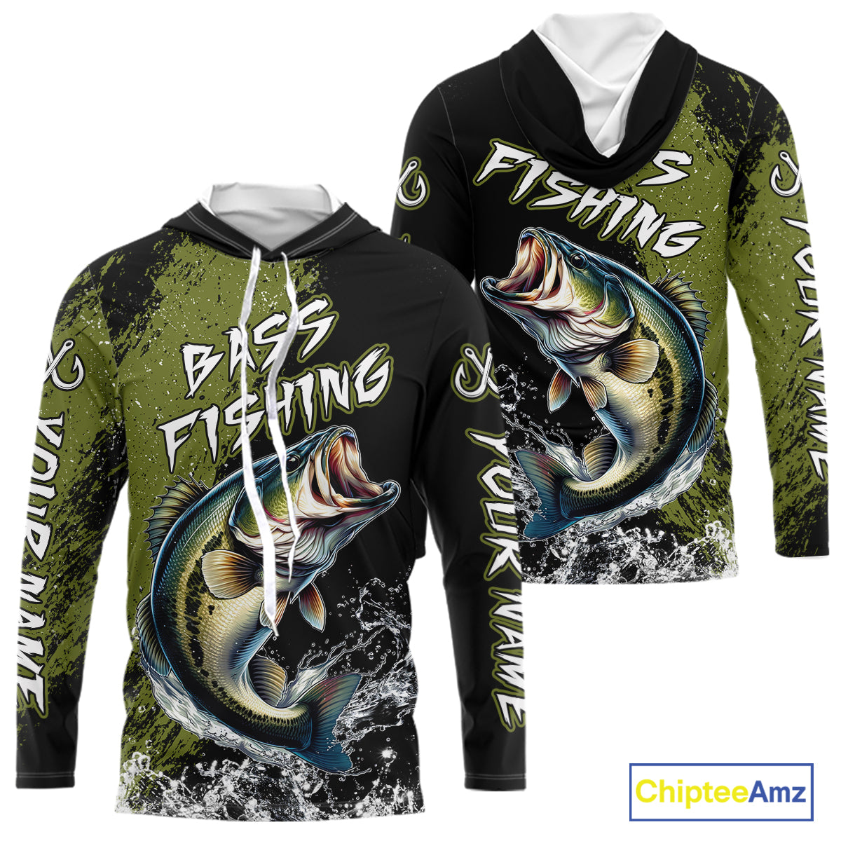 Black and Green Largemouth Bass Fishing Jerseys Custom Bass performance fishing apparel NQS11068