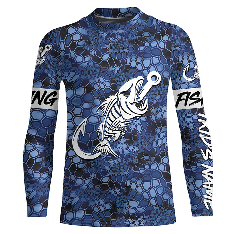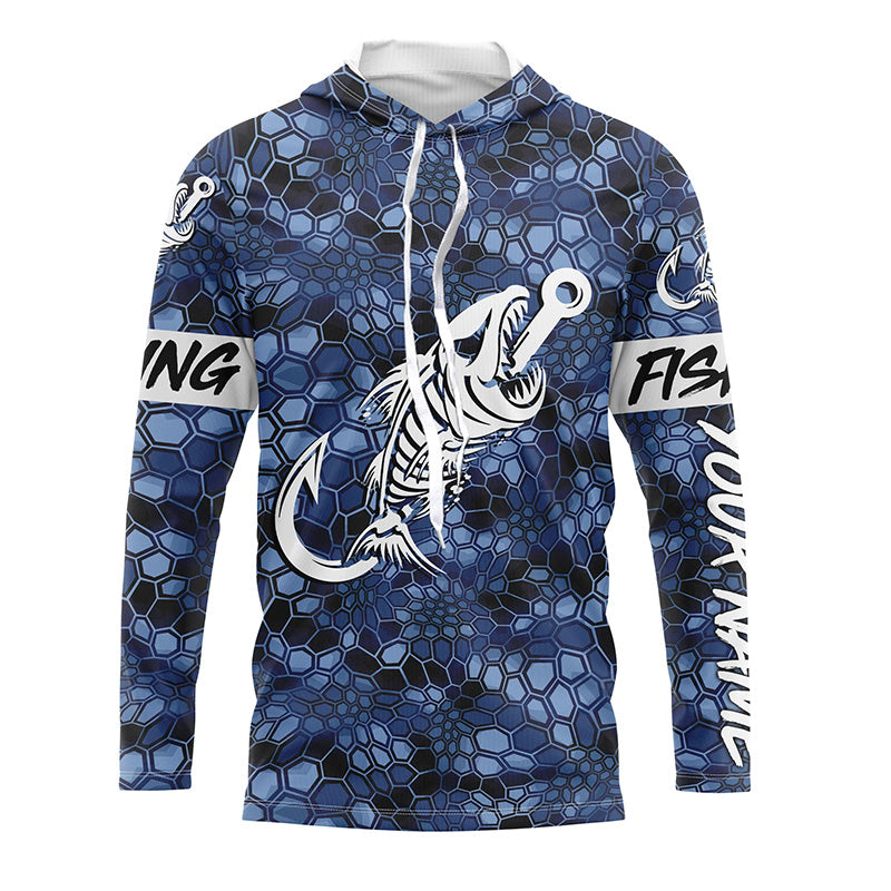 Blue Camo fishing shirts Fish hook skull Custom Name sun protection mens long sleeve fishing shirts NQS5084