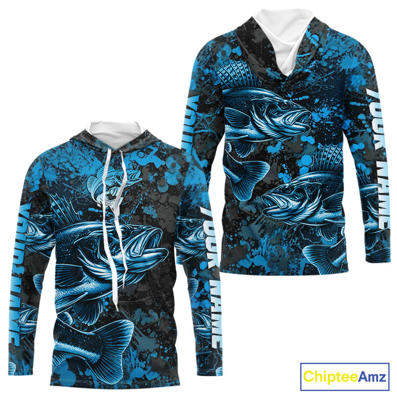 Blue Camo Walleye Fishing Shirts Custom performance fishing apparel, walleye fishing jerseys NQS11061
