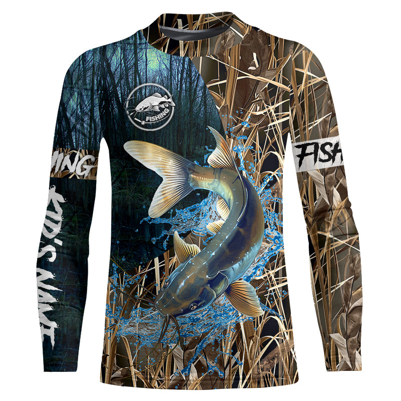 Catfish Fishing Camo Custom name Long sleeve fishing shirts, Catfish Fishing Jerseys NQS617