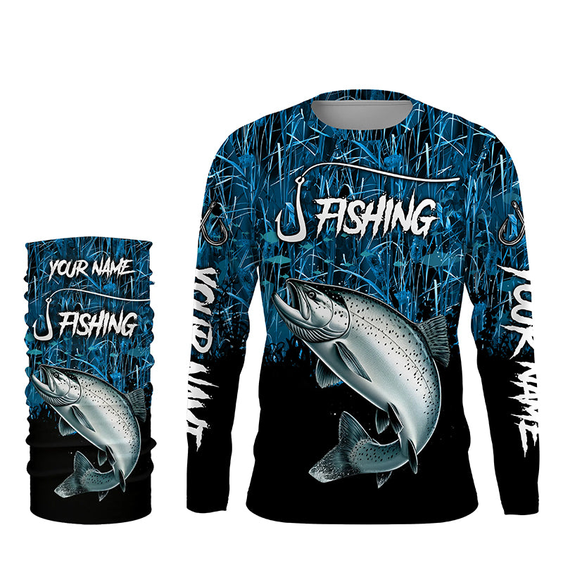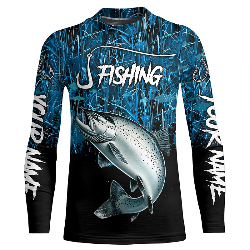 Chinook salmon Fishing blue camo Custom UV protection long sleeves fishing shirts NQS5772