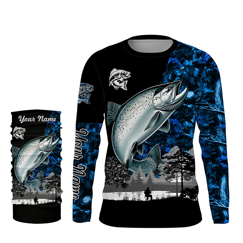 Chinook Salmon( King Salmon) Fishing blue camo Customize name UV protection performance fishing shirts NQS1987