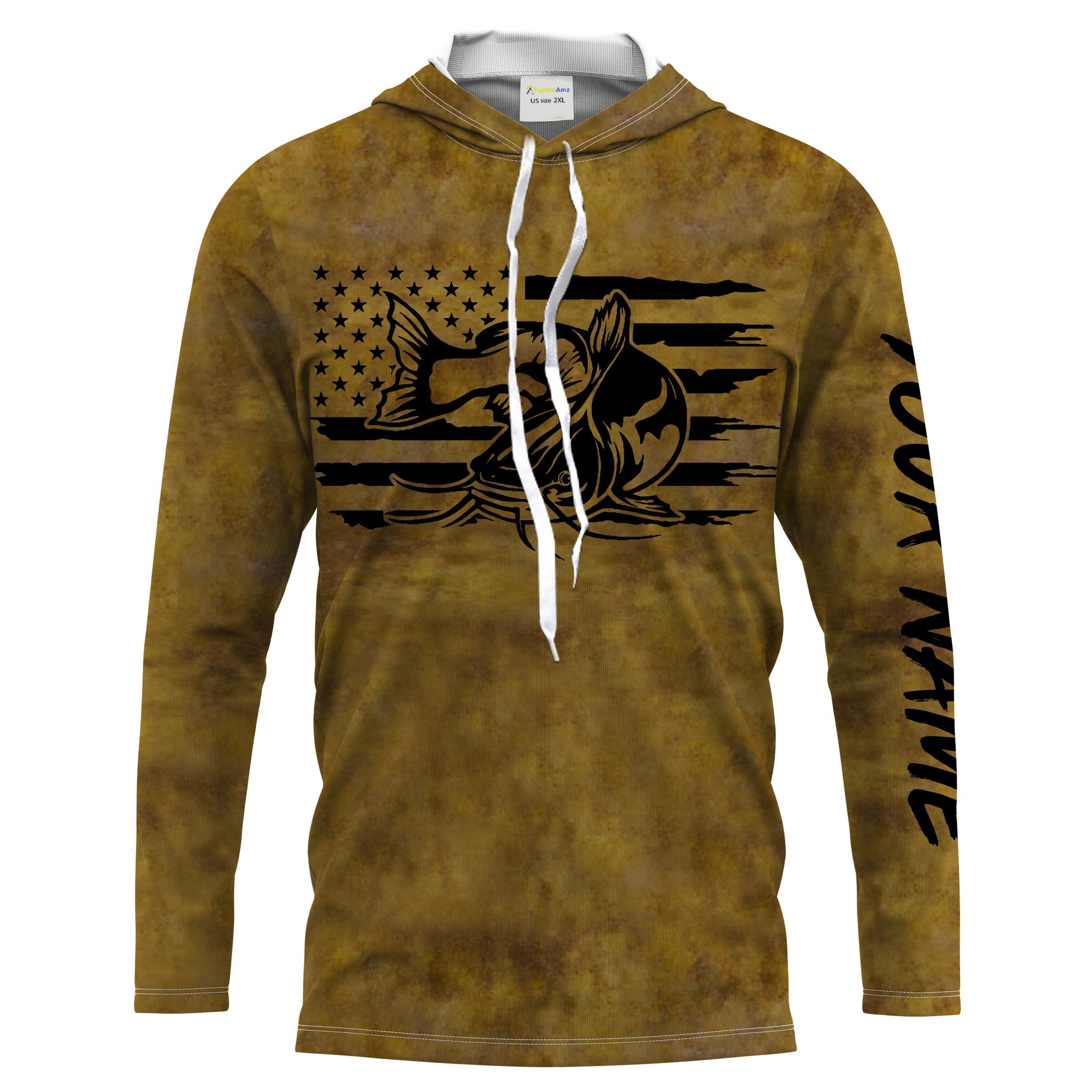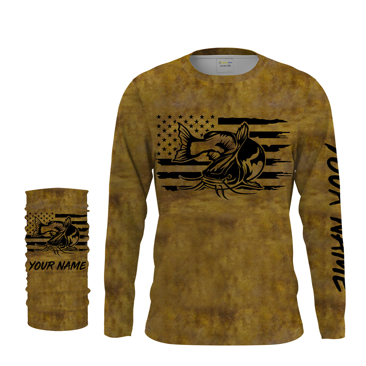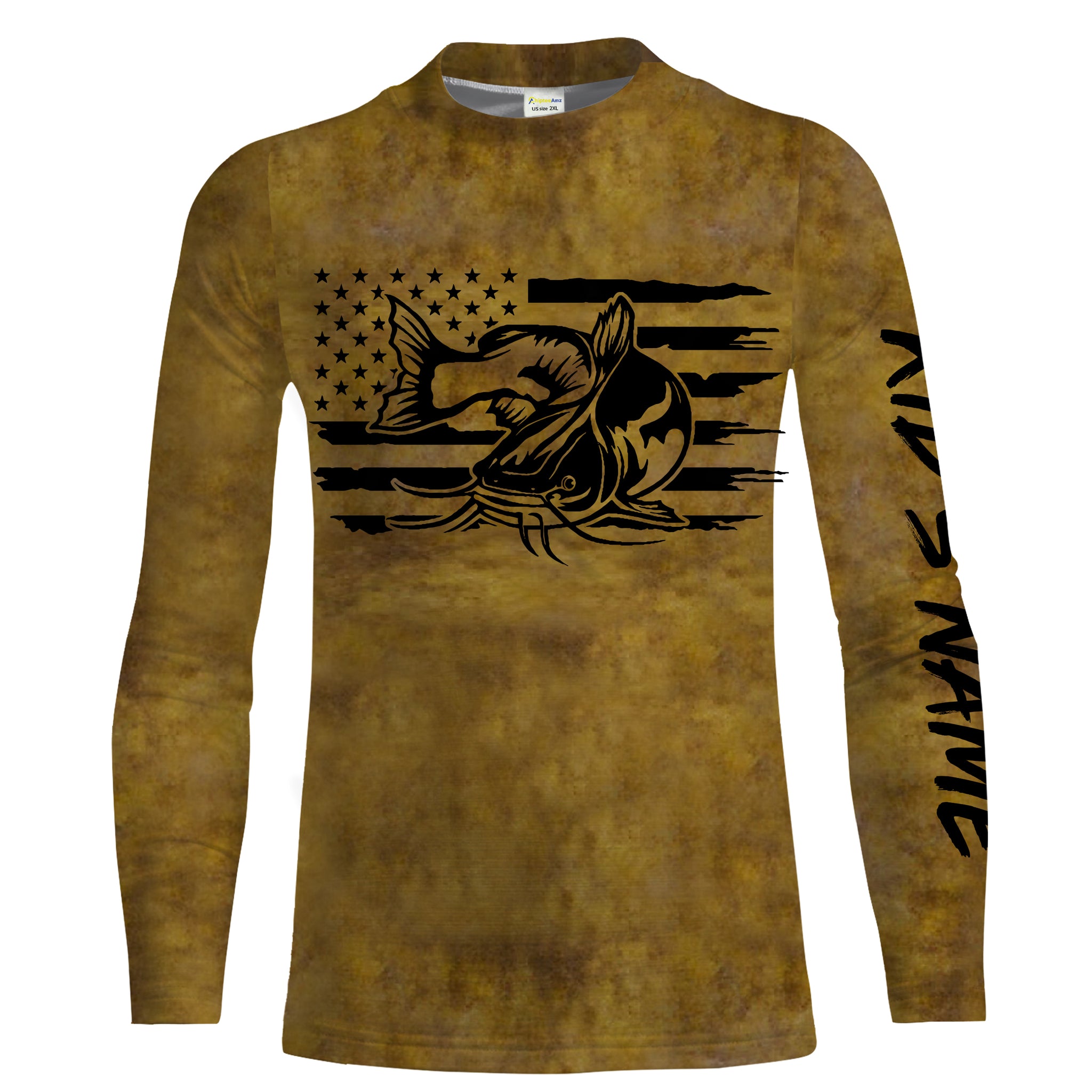 Flathead Catfish Fishing jerseys American flag patriotic, Catfish Long Sleeve Fishing Shirts NQS2208
