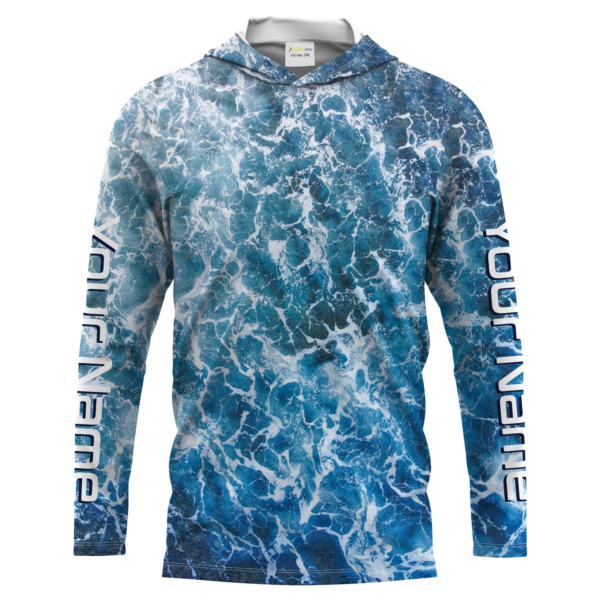 Custom Saltwater Long sleeve Fishing Shirts UV Protection, Sea wave camo Fishing Shirts - IPHW1330