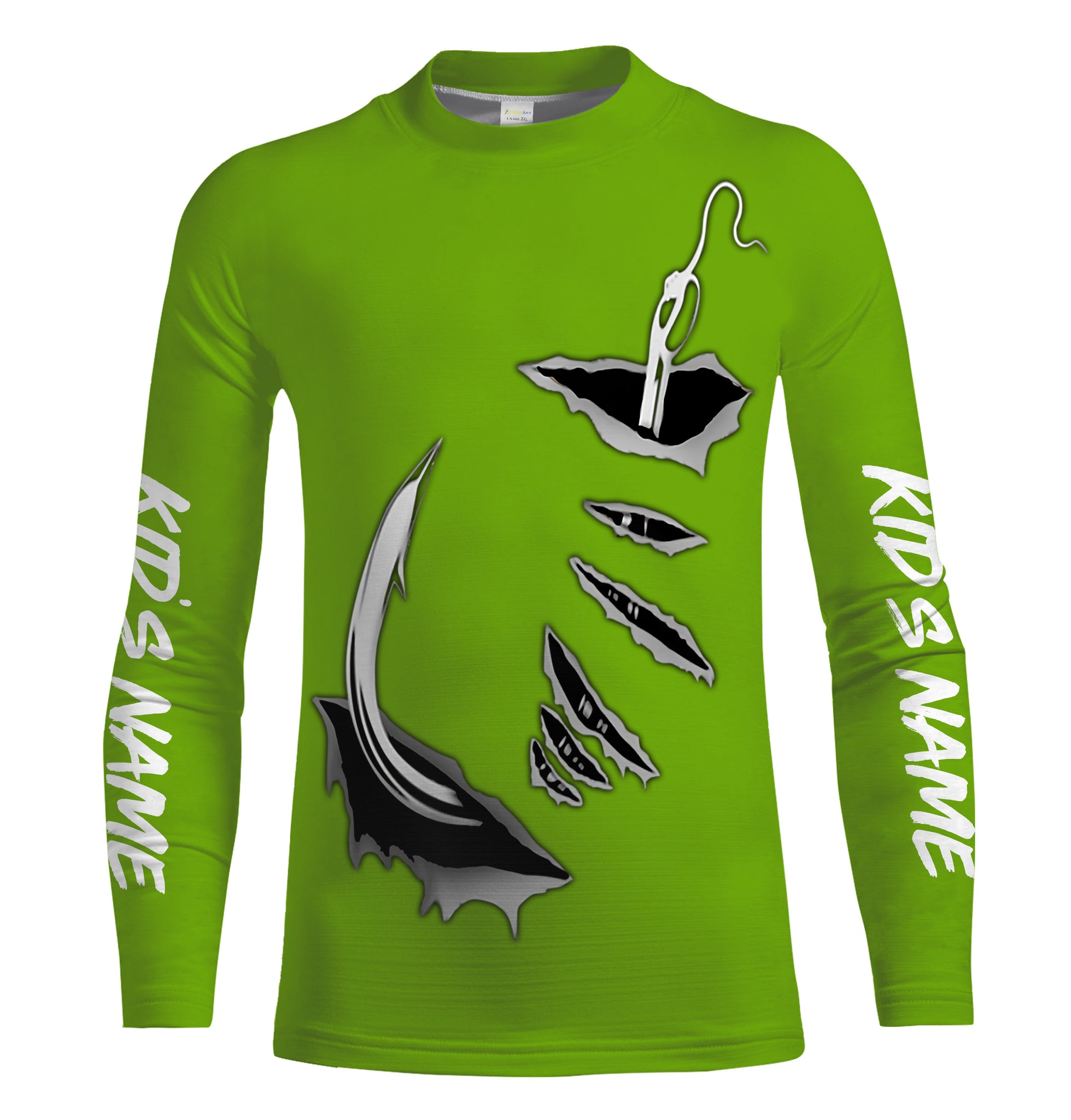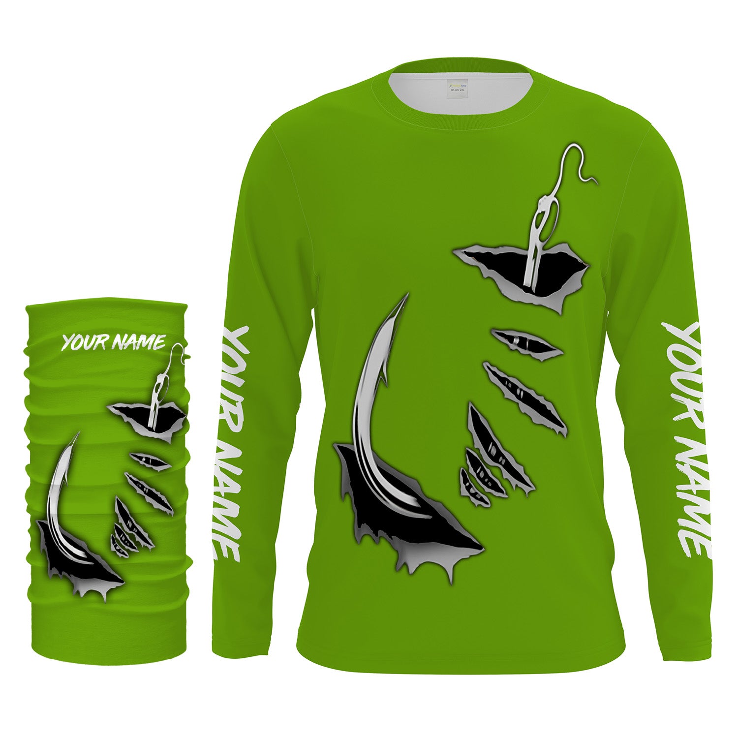 Fish hook Custom Green Long Sleeve performance Fishing Shirts Fishing jerseys - IPHW1366