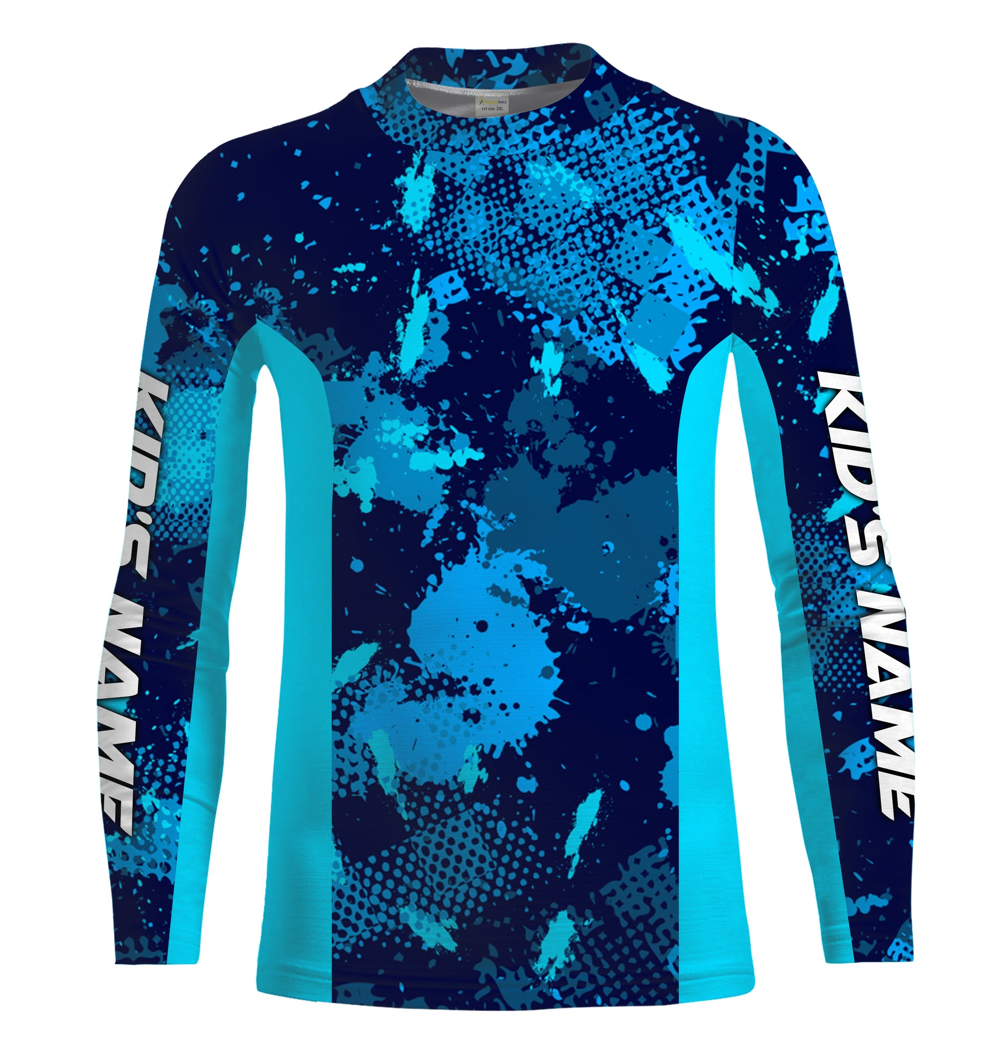 Fishing teal blue camo Custom UV Long Sleeve Fishing Shirts, UV Protection Outdoor shirts - IPHW1225
