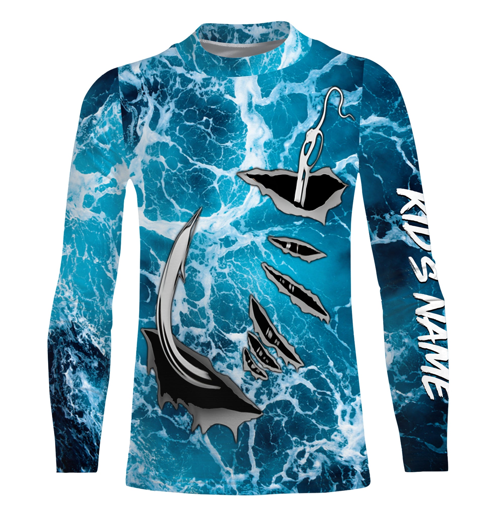 Fishing camo Fish hook Custom Long sleeve performance Fishing Shirts, sea waves camo Fishing jerseys IPHW2935