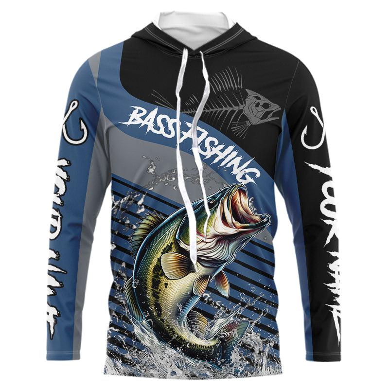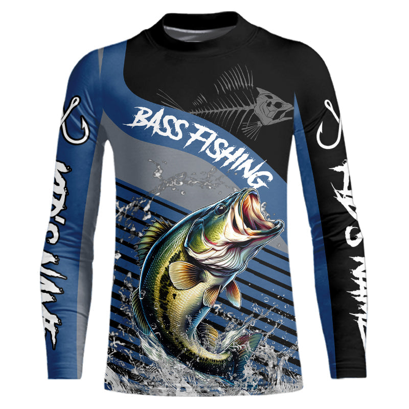 Largemouth Bass fishing Custom UV protection fishing long sleeve shirt, Bass Fishing jerseys | Blue NQS9351