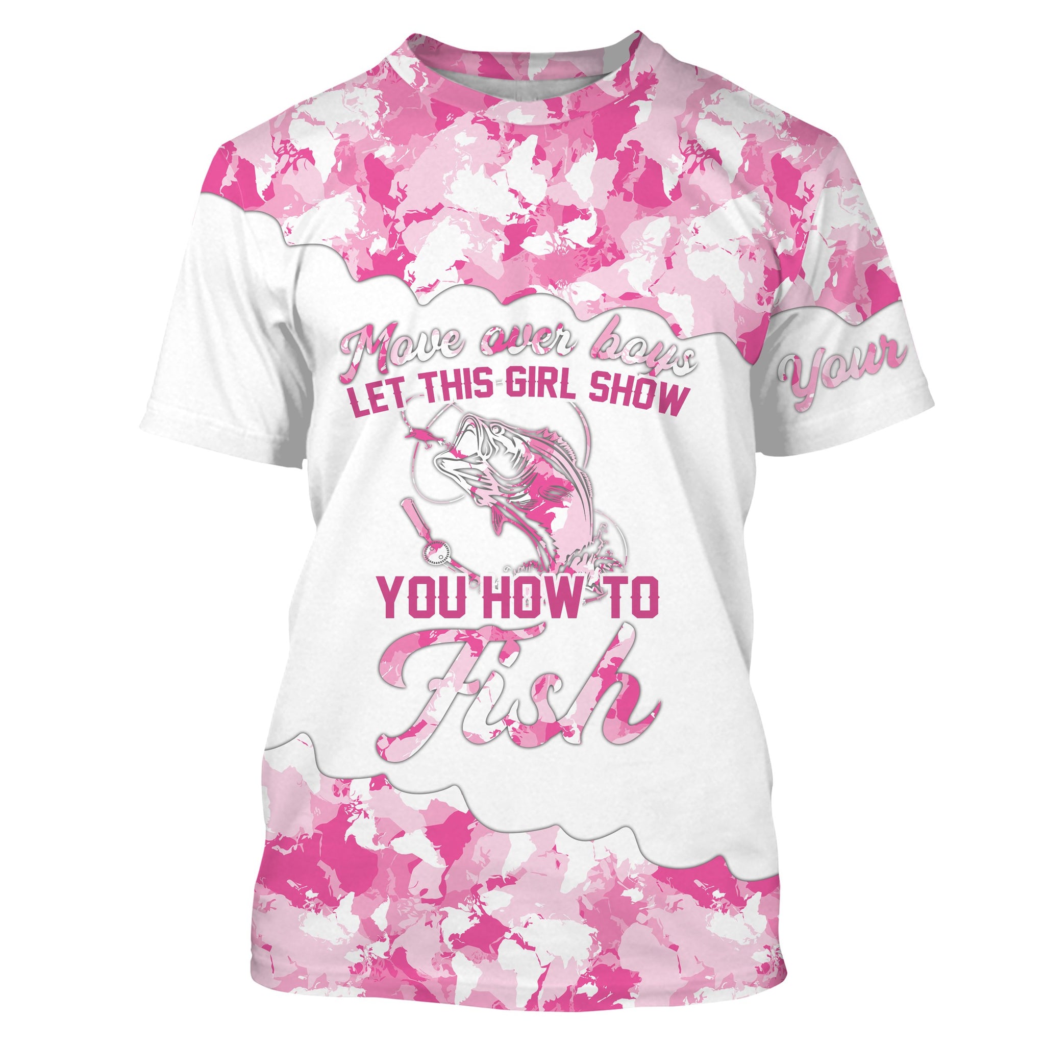 Pink camo let this girl show you how to fish Custom girls fishing shirts Long Sleeve NQS2482