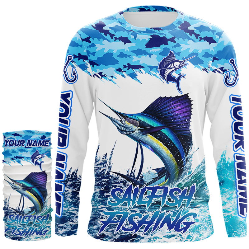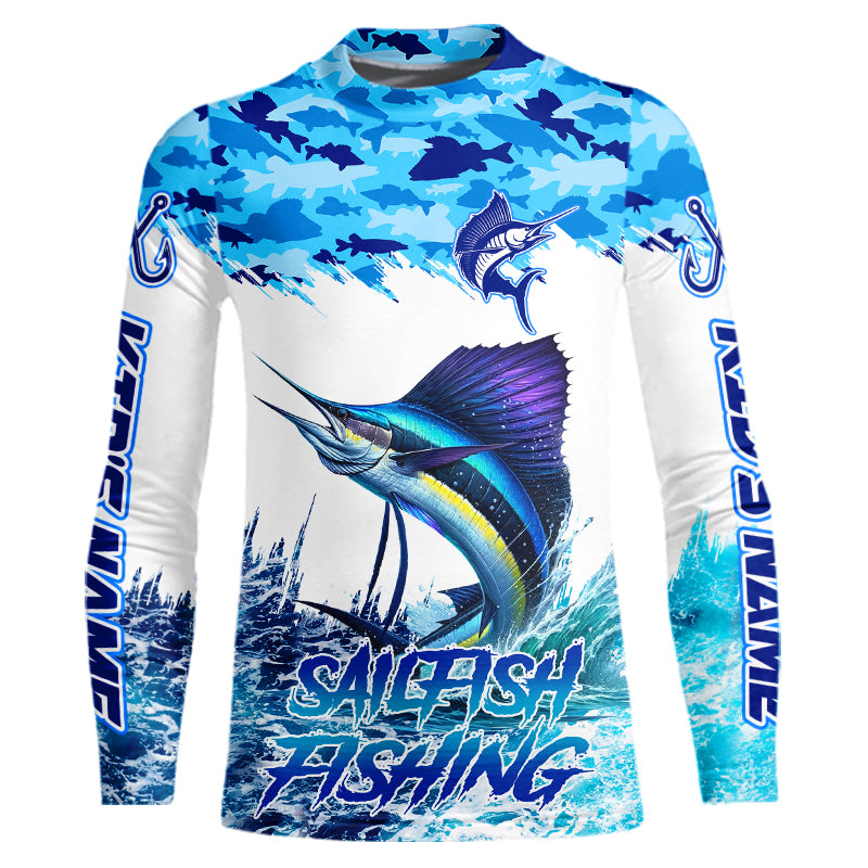 Sailfish fishing Blue sea camo Custom UV protection fishing long sleeve shirt, Sailfish Fishing jersey NQS9342