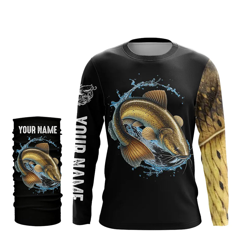 Black Flathead Catfish Fishing Shirts Yellow Scales Custom UV protection long sleeves fishing shirts NQS954
