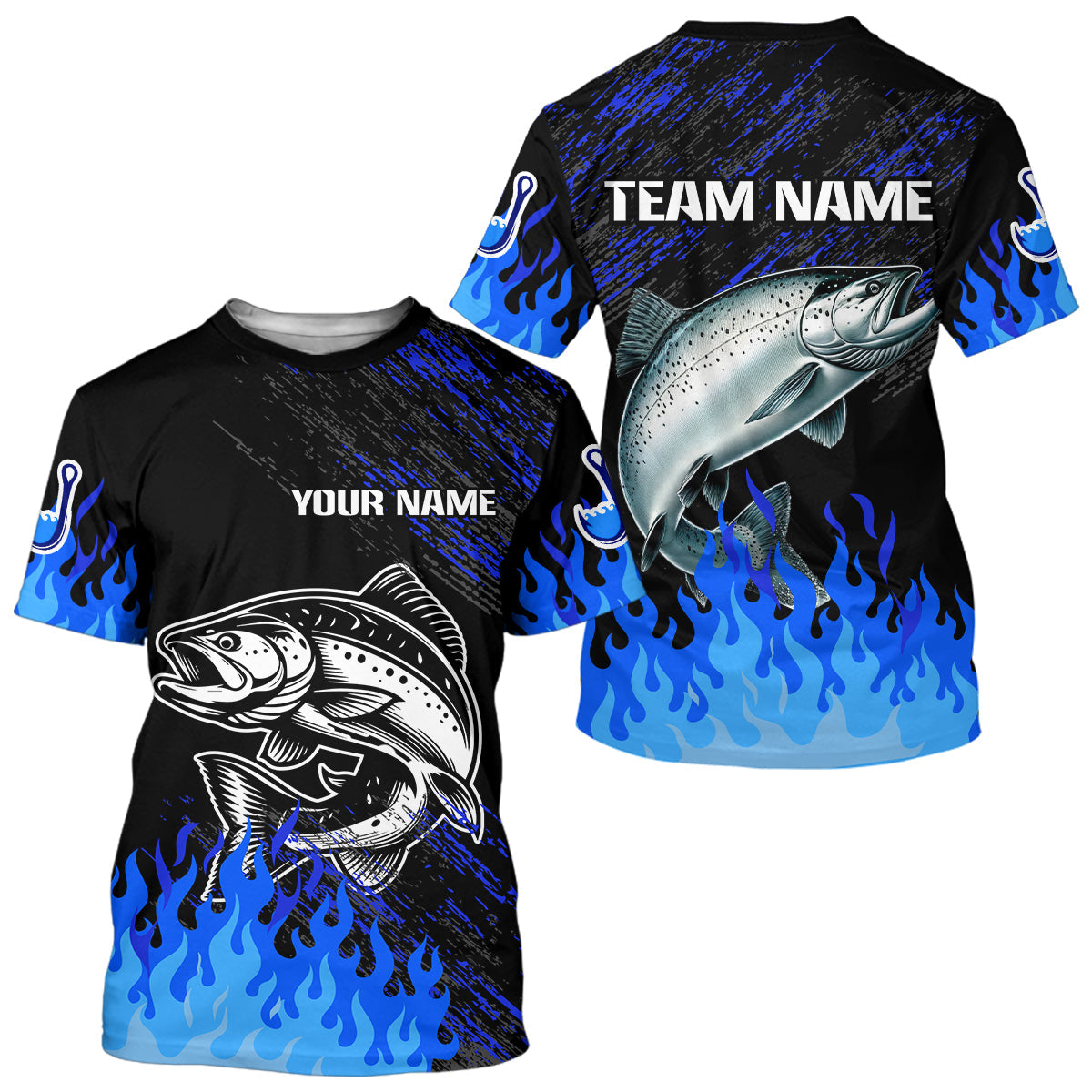 Blue fire Salmon fishing Custom performance long sleeve Salmon fishing tournament shirts for team NQS9742